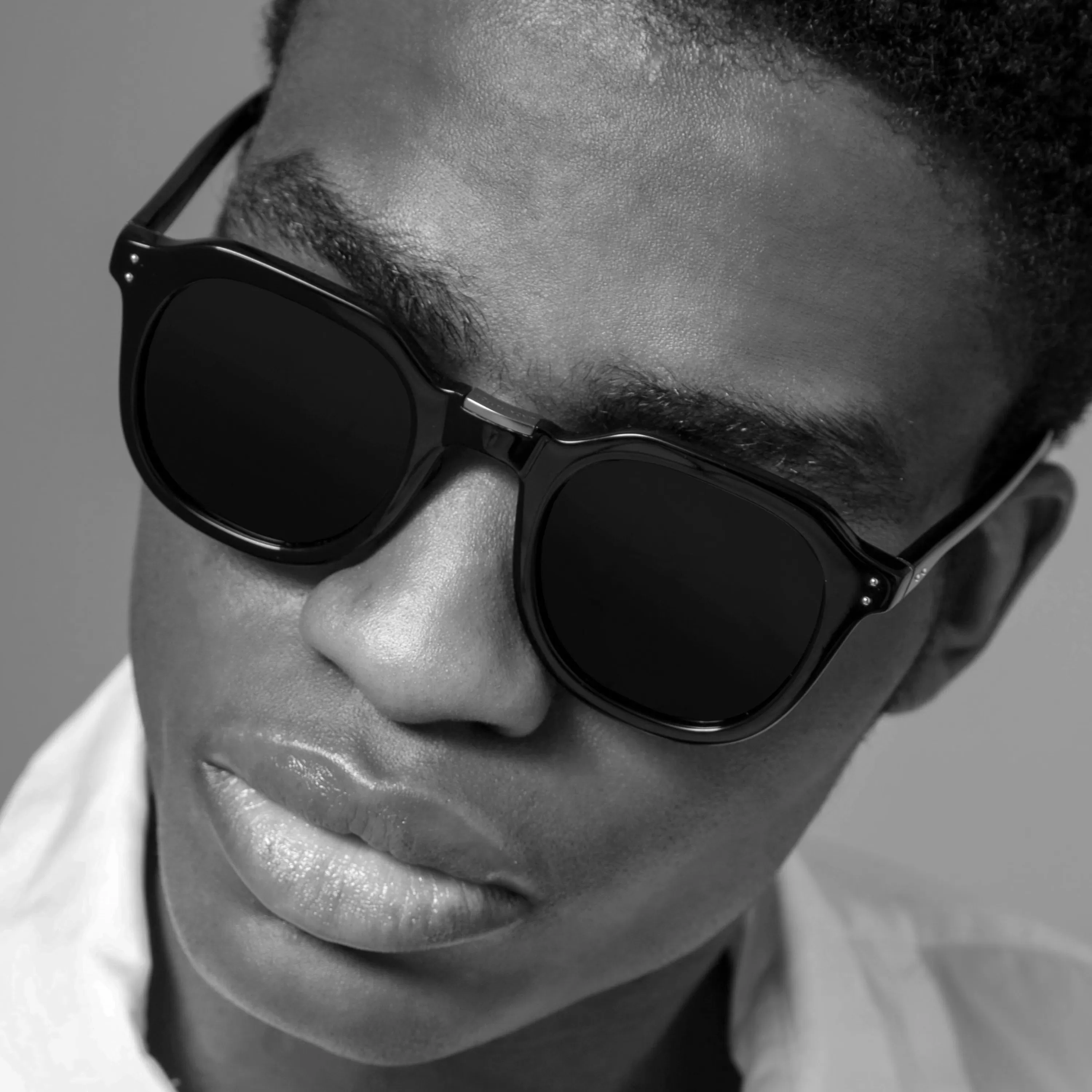 The Fletcher employs subtle detailing to elevate and add intrigue. The angular sunglasses are sculpted from recycled black acetate, facets leading to a squared titanium bridge detail. Beveled acetate temples are completed with rounded tips highlights.