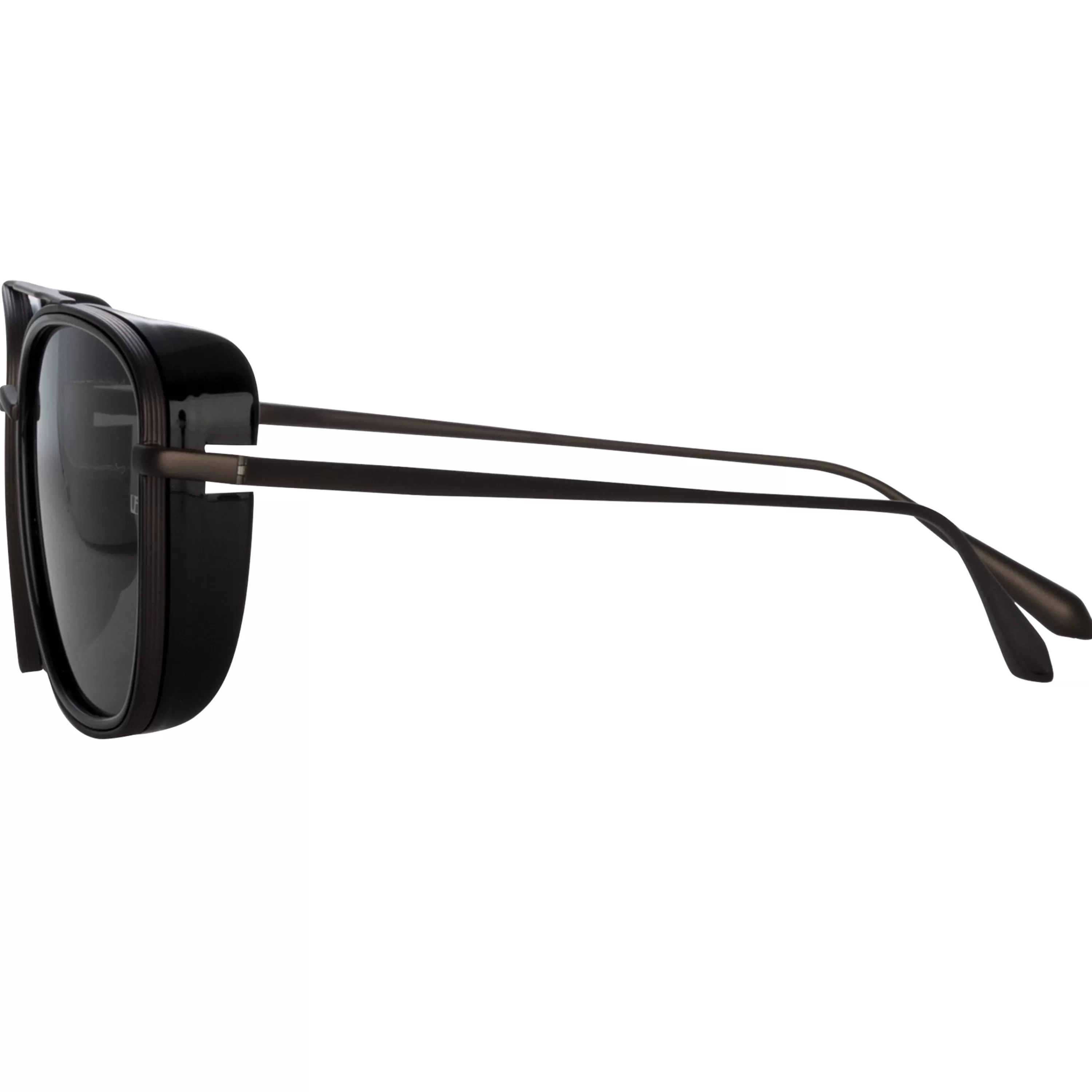 Introducing Jarvis, a complex in-house design crafted from Japanese titanium with with a matt nickel colour plating. Paired with grey solid technology lenses for 100% UV protection.
