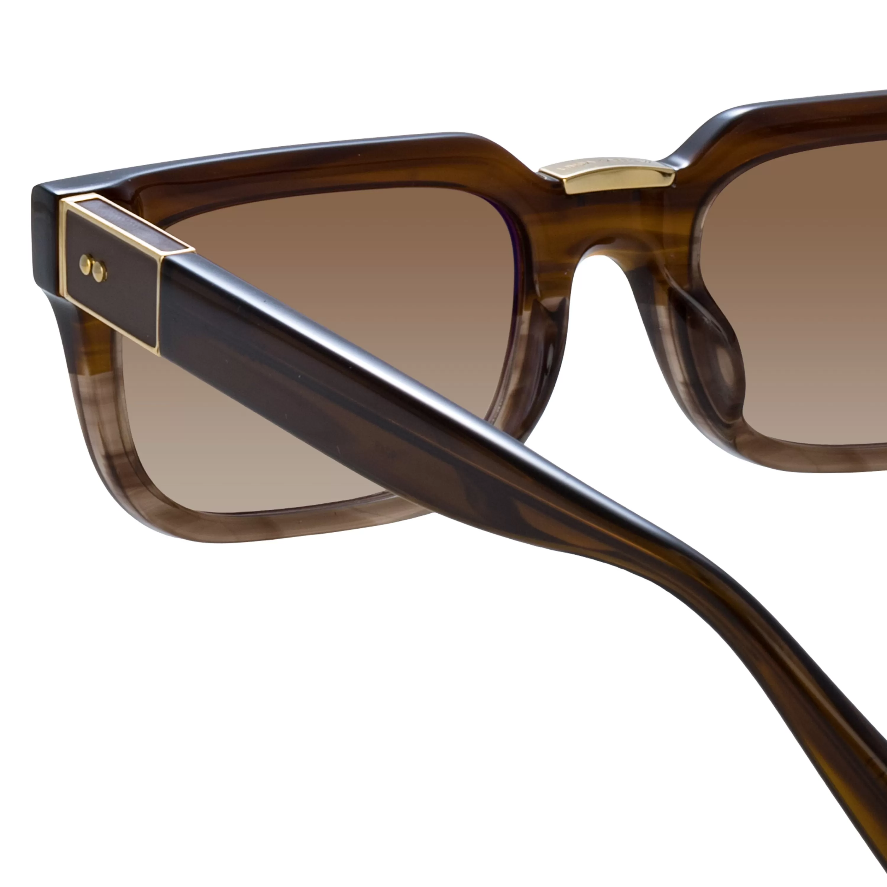 Introducing the Yoan frame. Sculpted from tobacco caramel horn, these acetate sunglasses are fitted with mocha gradient lenses.