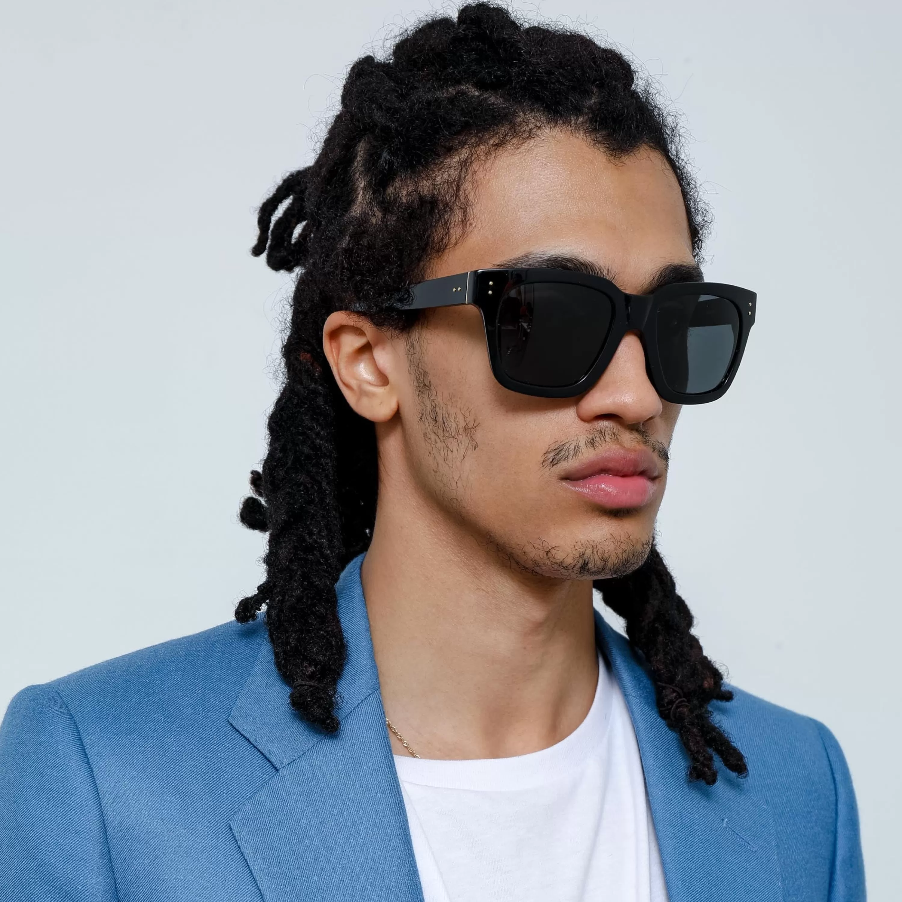 Named after the grandson of LINDA FARROW these chunky D-frame sunglasses form part of our core collection. Crafted from recycled black acetate, the frames are hand polished for a soft edge finish. Sculpted nose pads and temple tips provide comfort to the wearer.