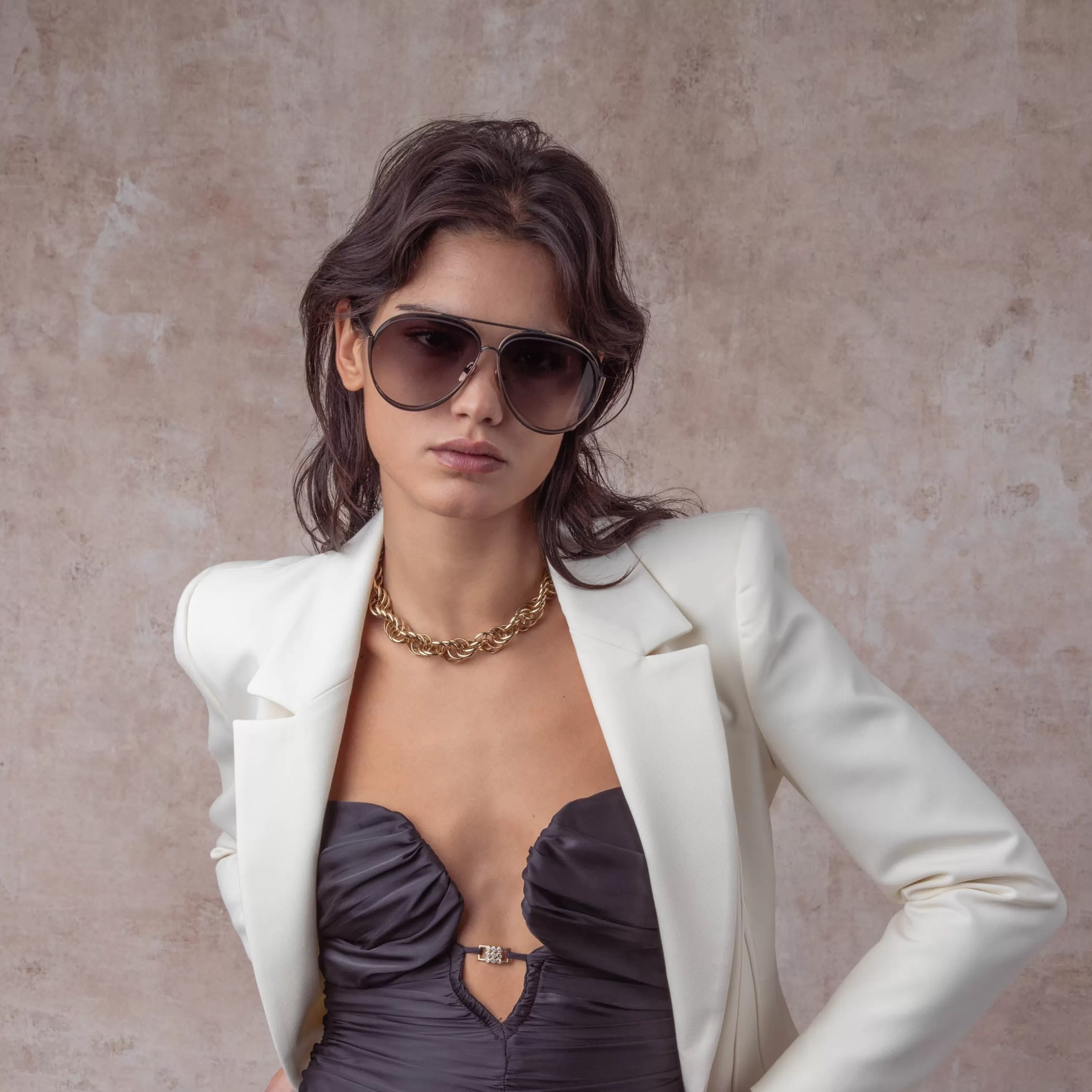 DescriptionThe Francisco Aviator Sunglasses in Nickel features intricate outer detailing. Details-100% UV protected sol…