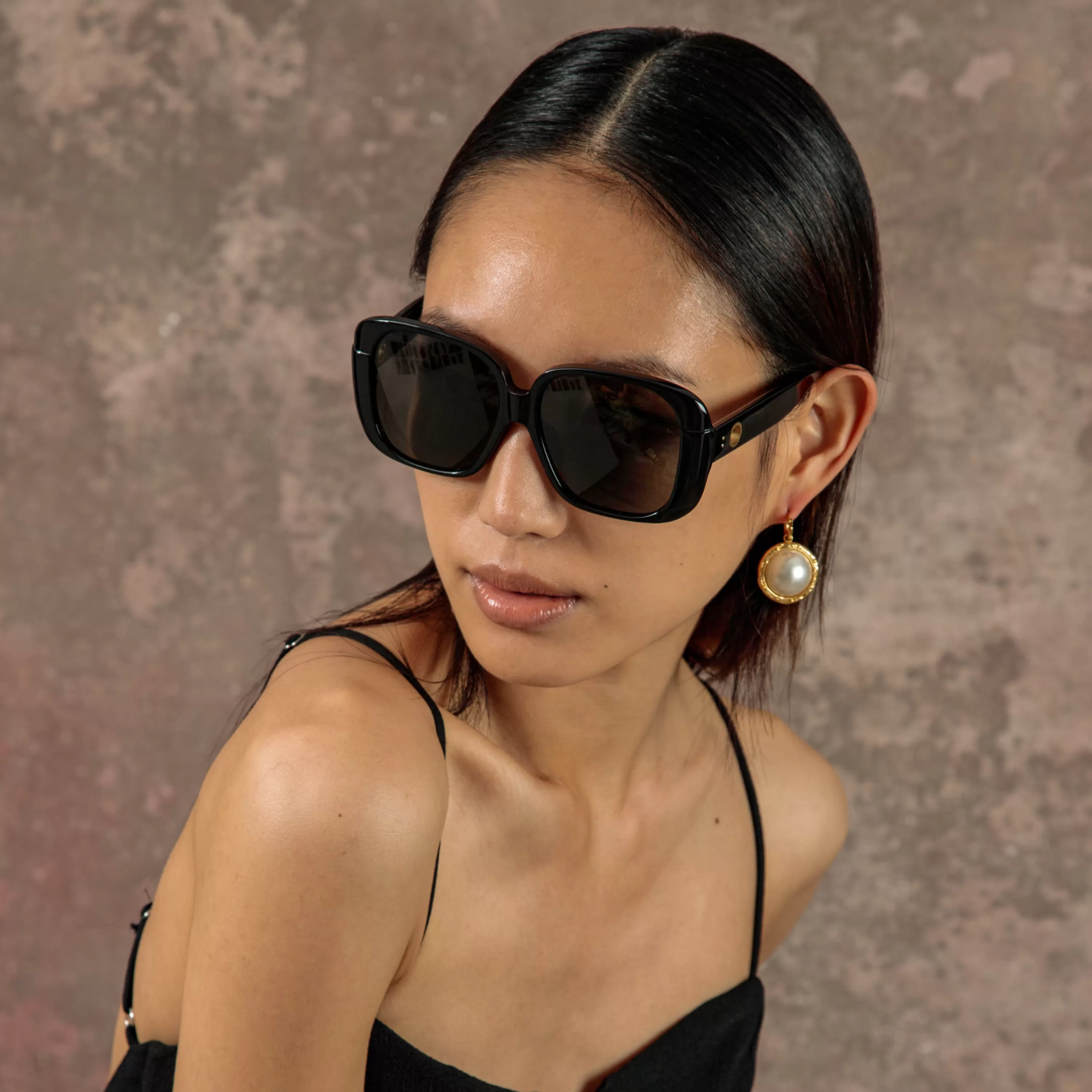 The frame is crafted from recycled black acetate, hand polished for smooth soft edges. The style has sculpted nose pads and temple tips to ensure a comfortable fit. The acetate temple bears our signature 22 carat yellow gold plated eyelet, compatible with our accessories, which celebrates the founding of the brand in ‘LONDON 1970’.