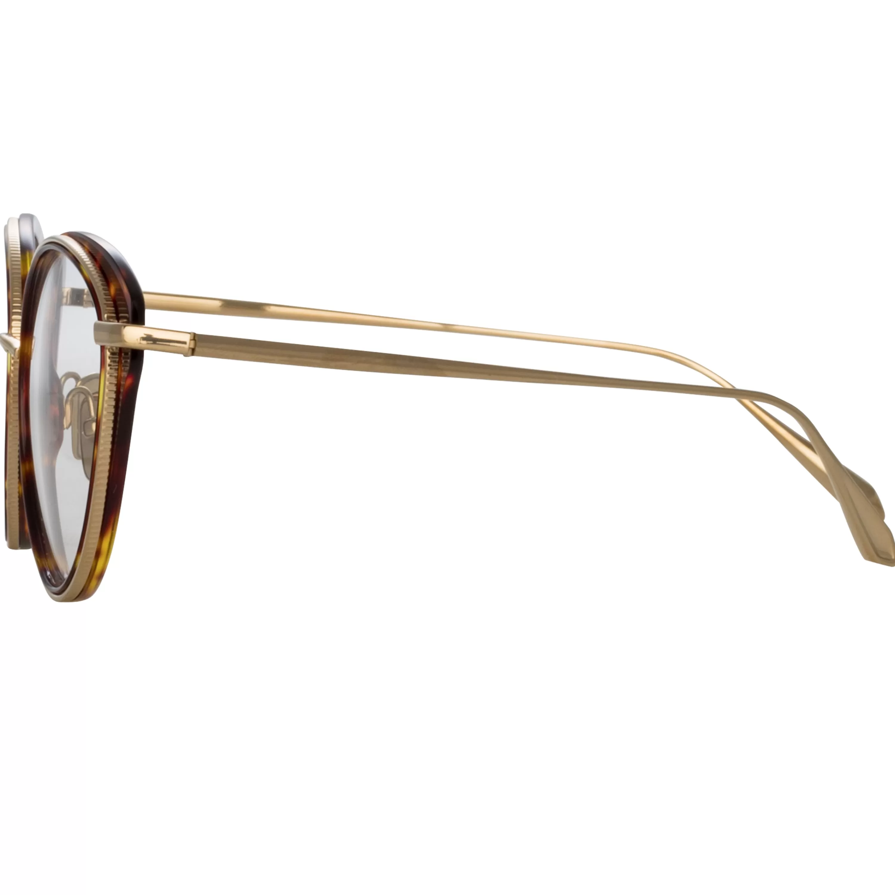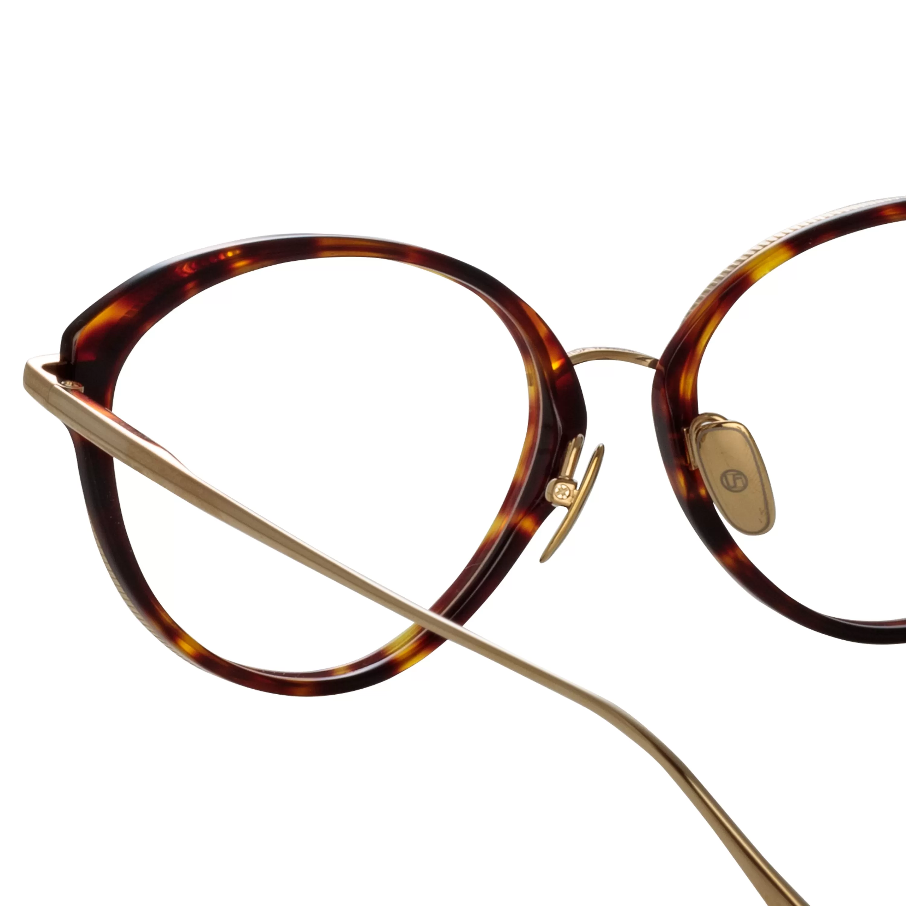 The Song pairs finely polished tortoiseshell acetate rims with a 22 carat yellow gold plated Japanese titanium framework.. They are completed with adjustable nose pads for superior comfort.