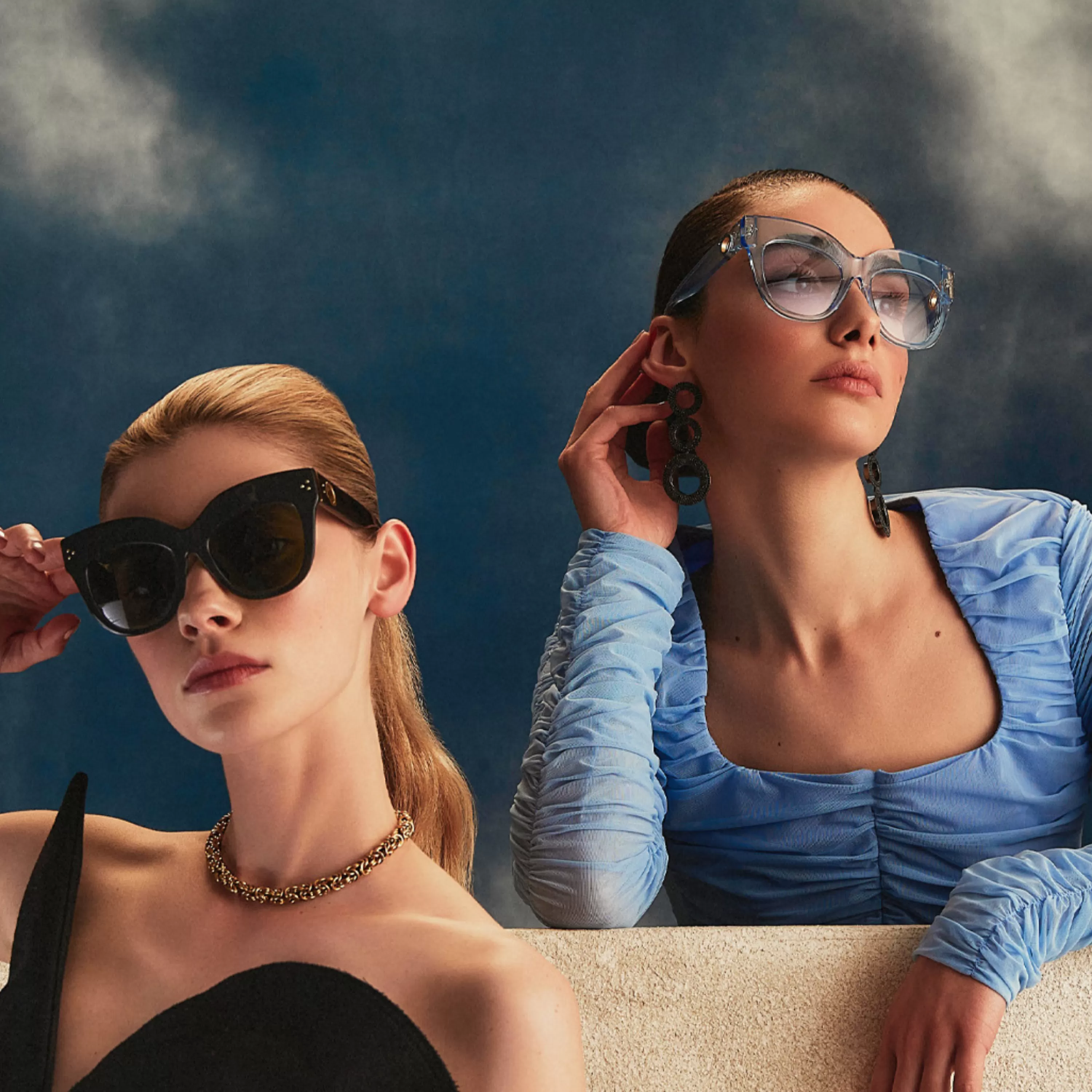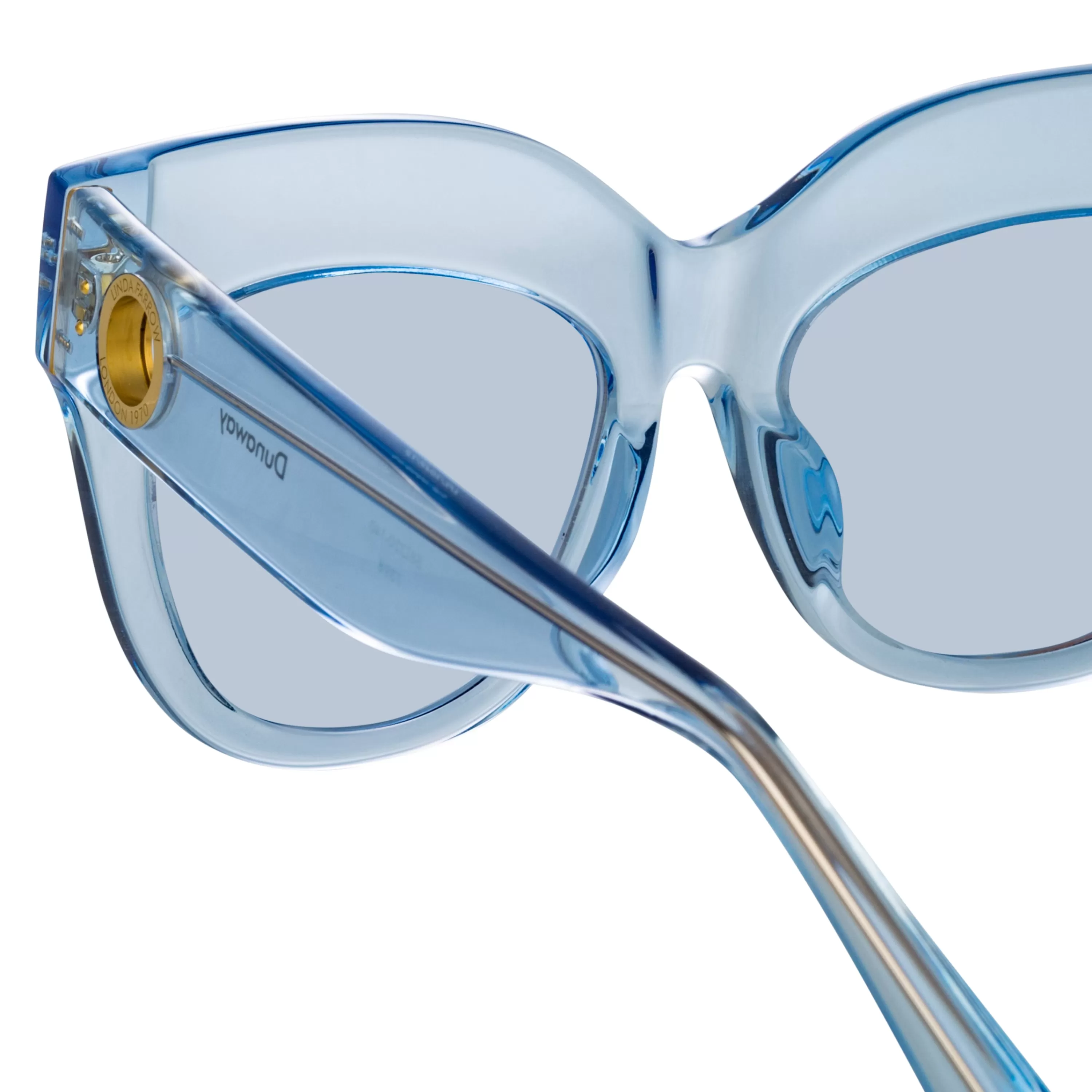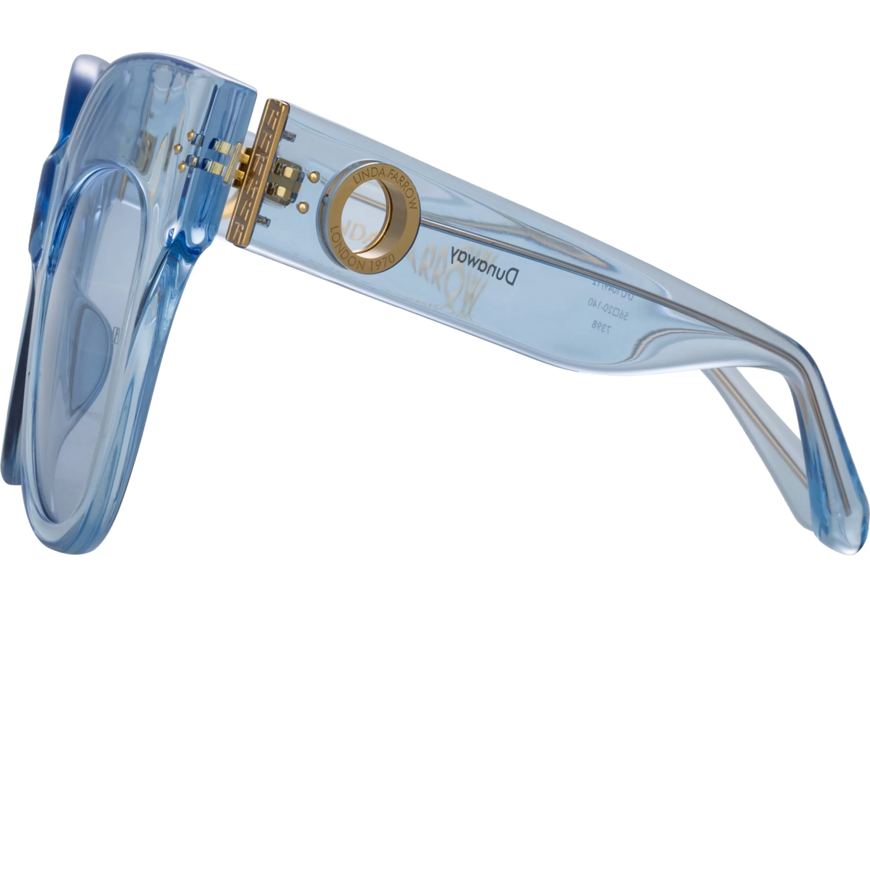 The LINDA FARROW iconic Dunaway frame is introduced in new colours for the season. Inspired by the tones of nature the silhouette is sculpted from a translucent sky blue acetate which is highly polished into a statement exaggerated brow.