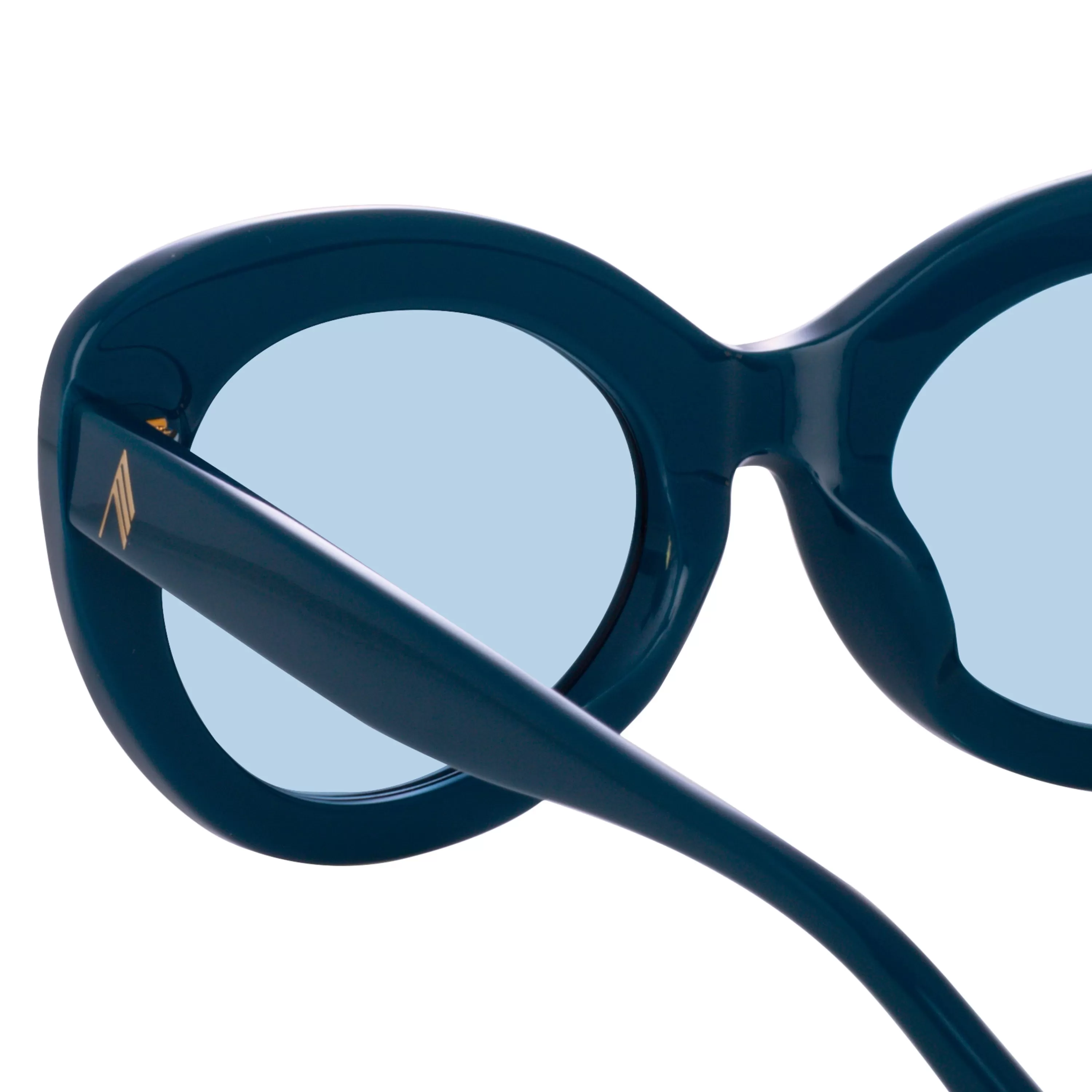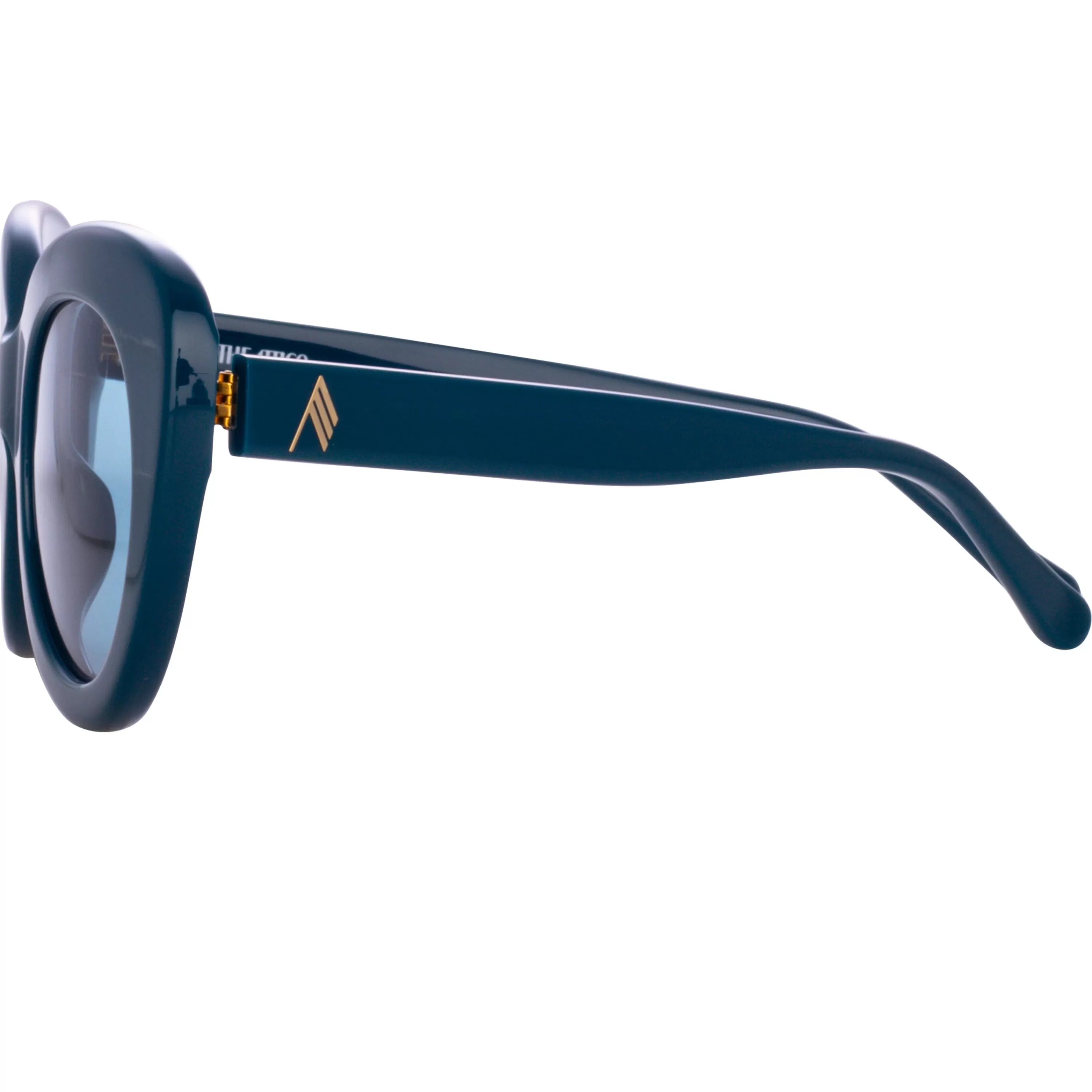 Introducing Agnes the newest addition to the LINDA FARROW + The Attico collaboration. The Cat Eye sunglasses are sculpted from turquiose acetate and hand polished for a luxurious high shine.Completed with solid blue lenses for UV protection.