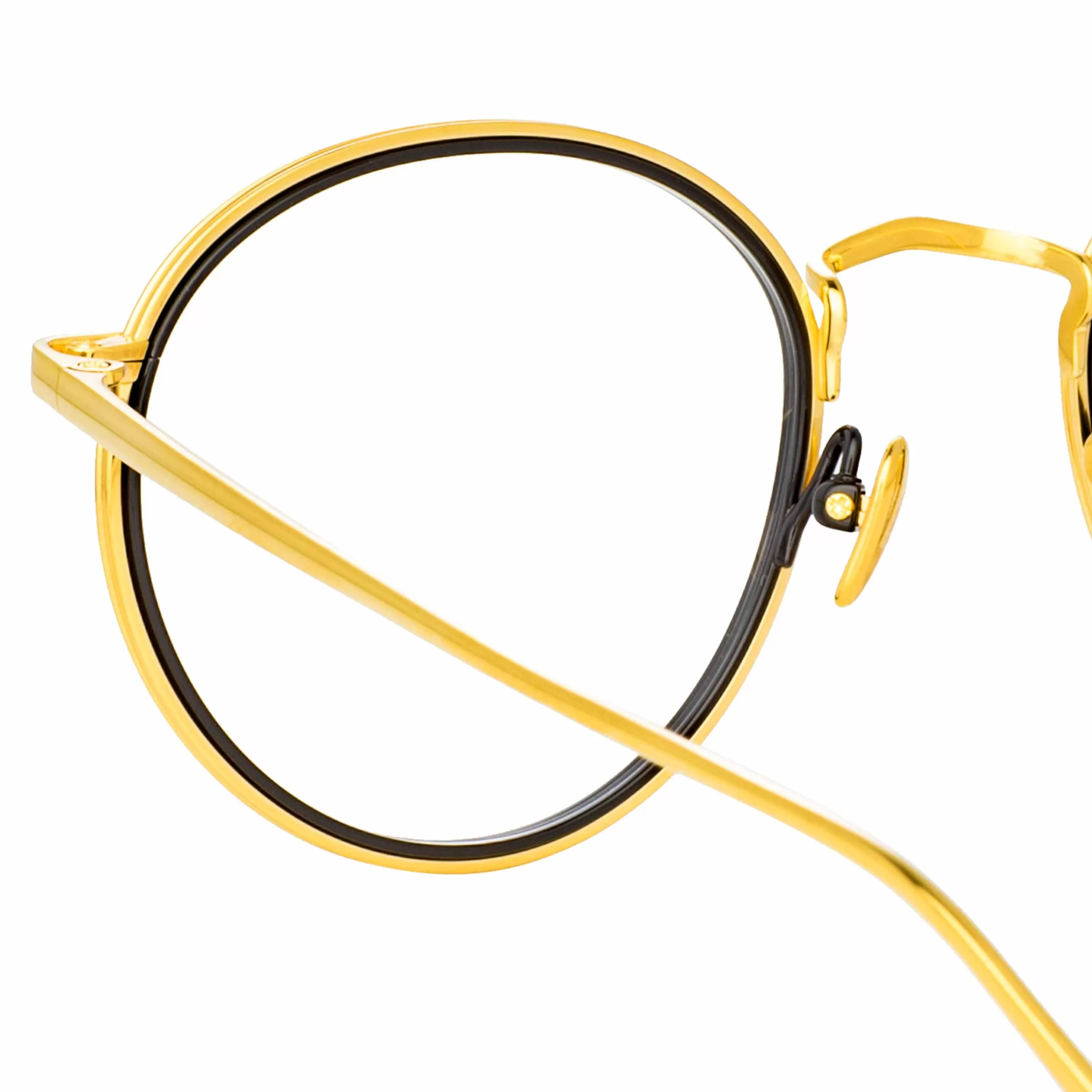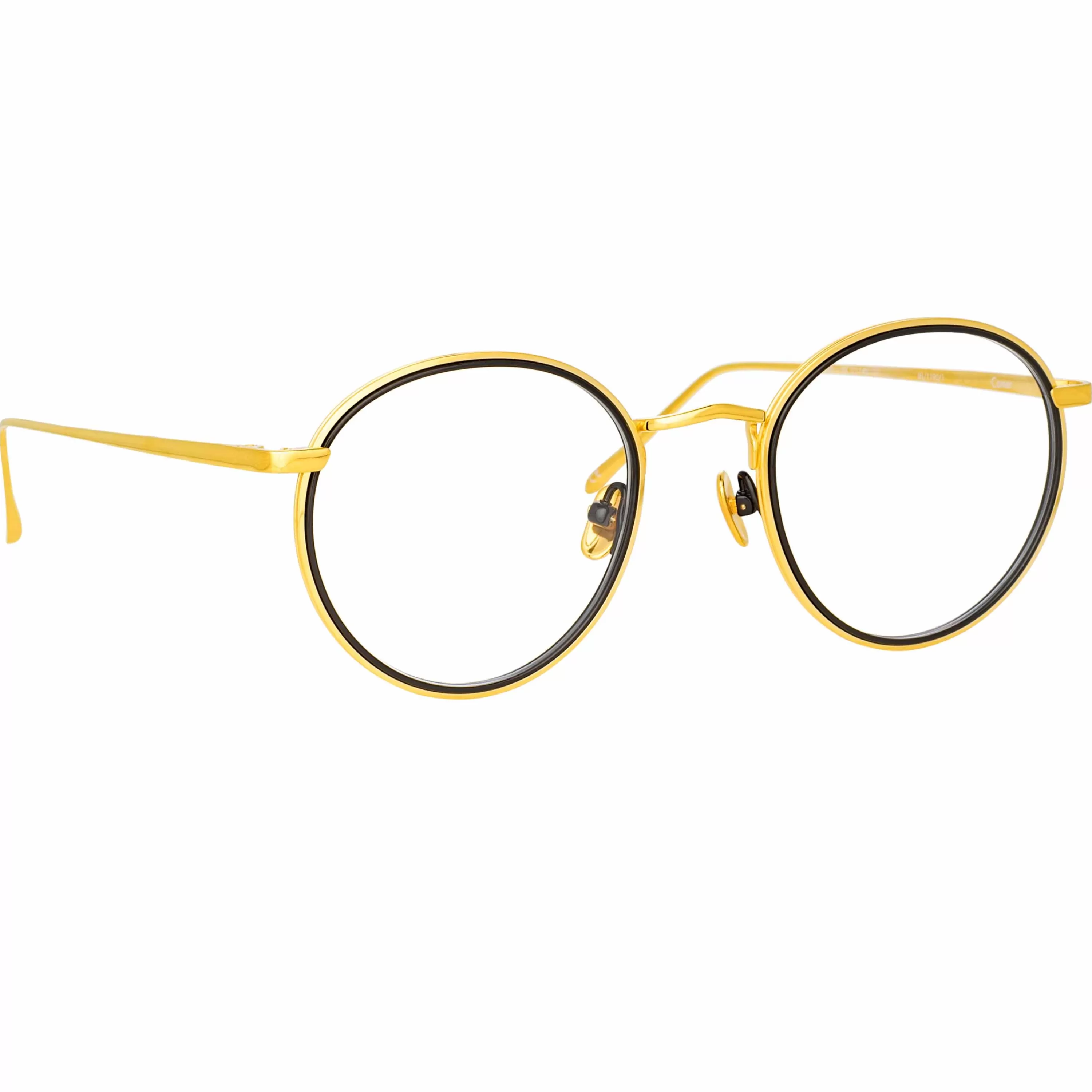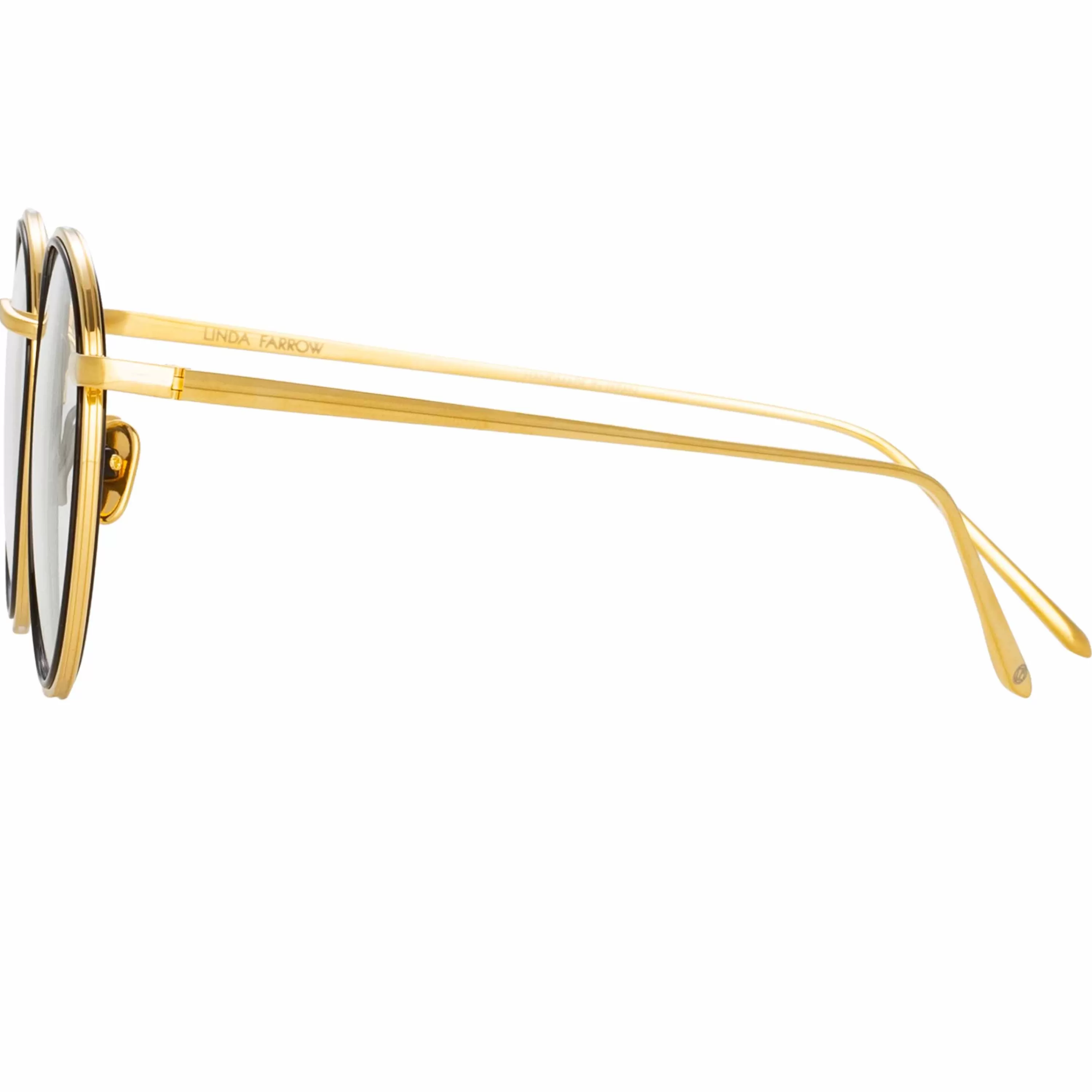 Fine titanium layered together creates a striking contrast in these delicate oval optical frames from the LINDA FARROW collection. The outer edge of the frame is pressed with step detailing and flows into the custom logo nose bridge.