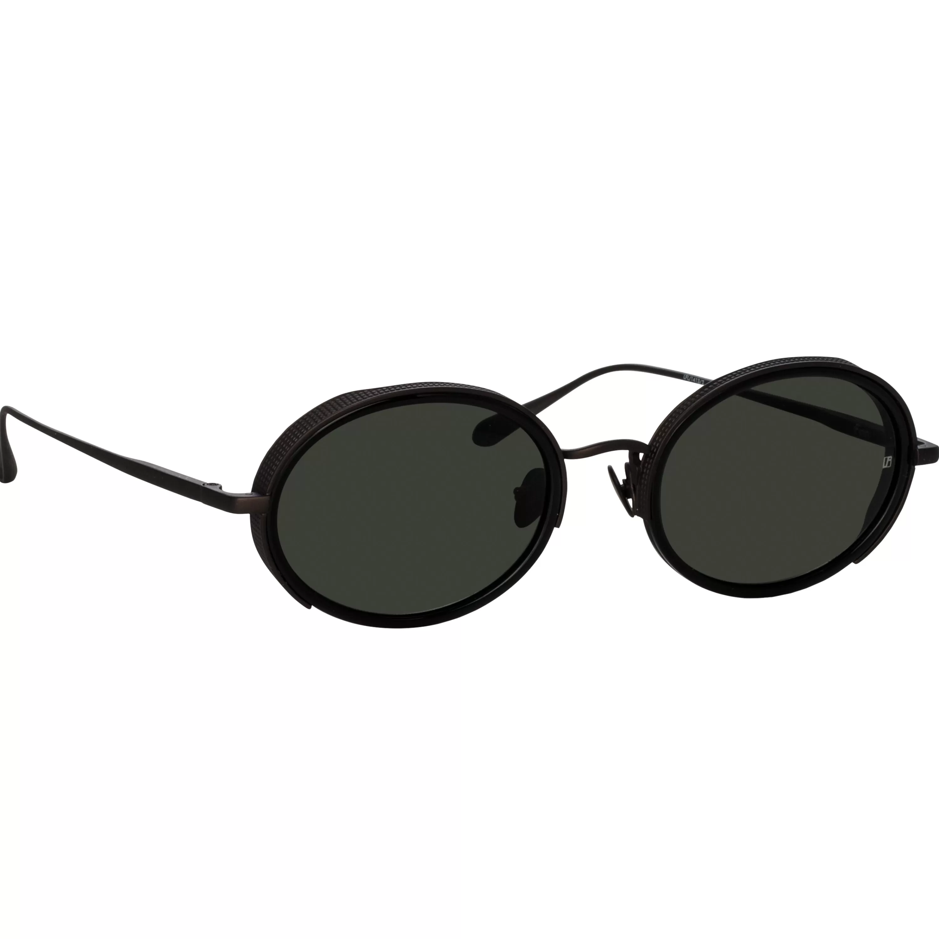 DescriptionThese oval sunglasses from the LINDA FARROW collection combine titanium rim with meticulously etched brows f…