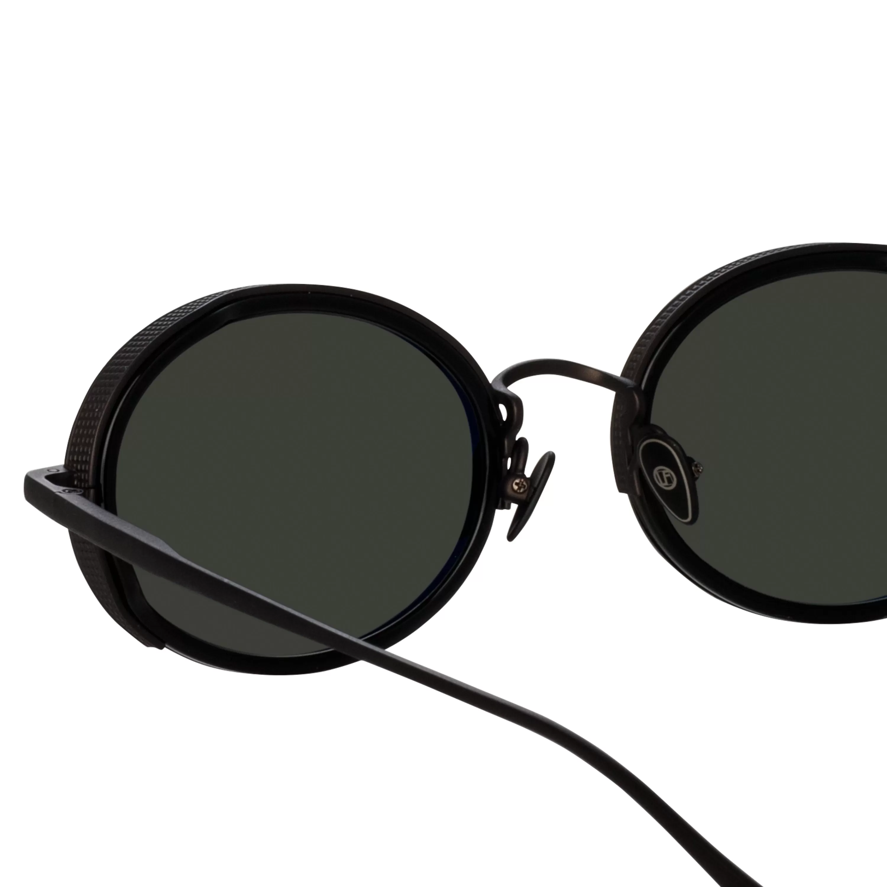 These oval sunglasses from the LINDA FARROW collection combine titanium rim with meticulously etched brows for an eye catching finish. Balanced with a sleek tapered temples and adjustable nose pads for a comfortable fit.