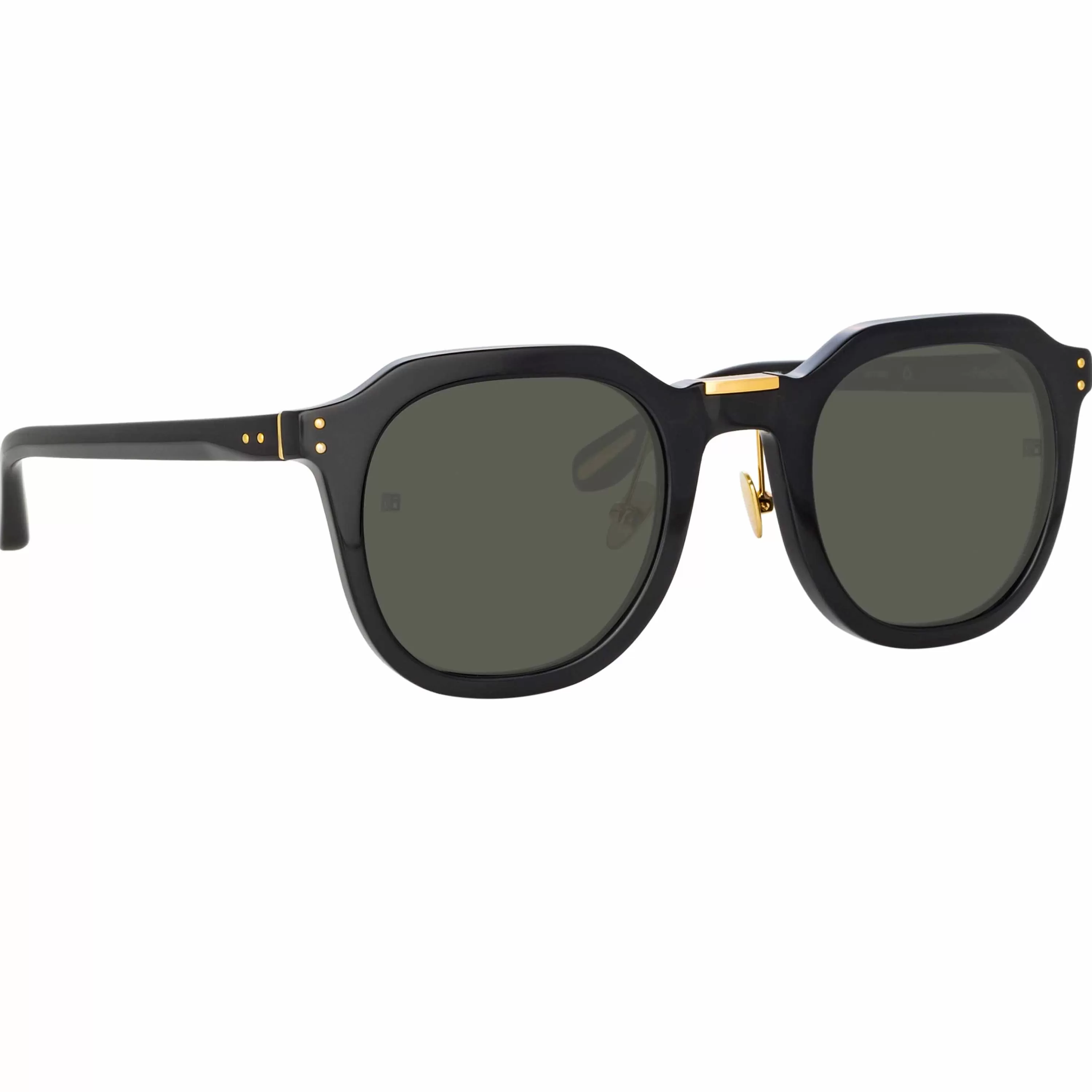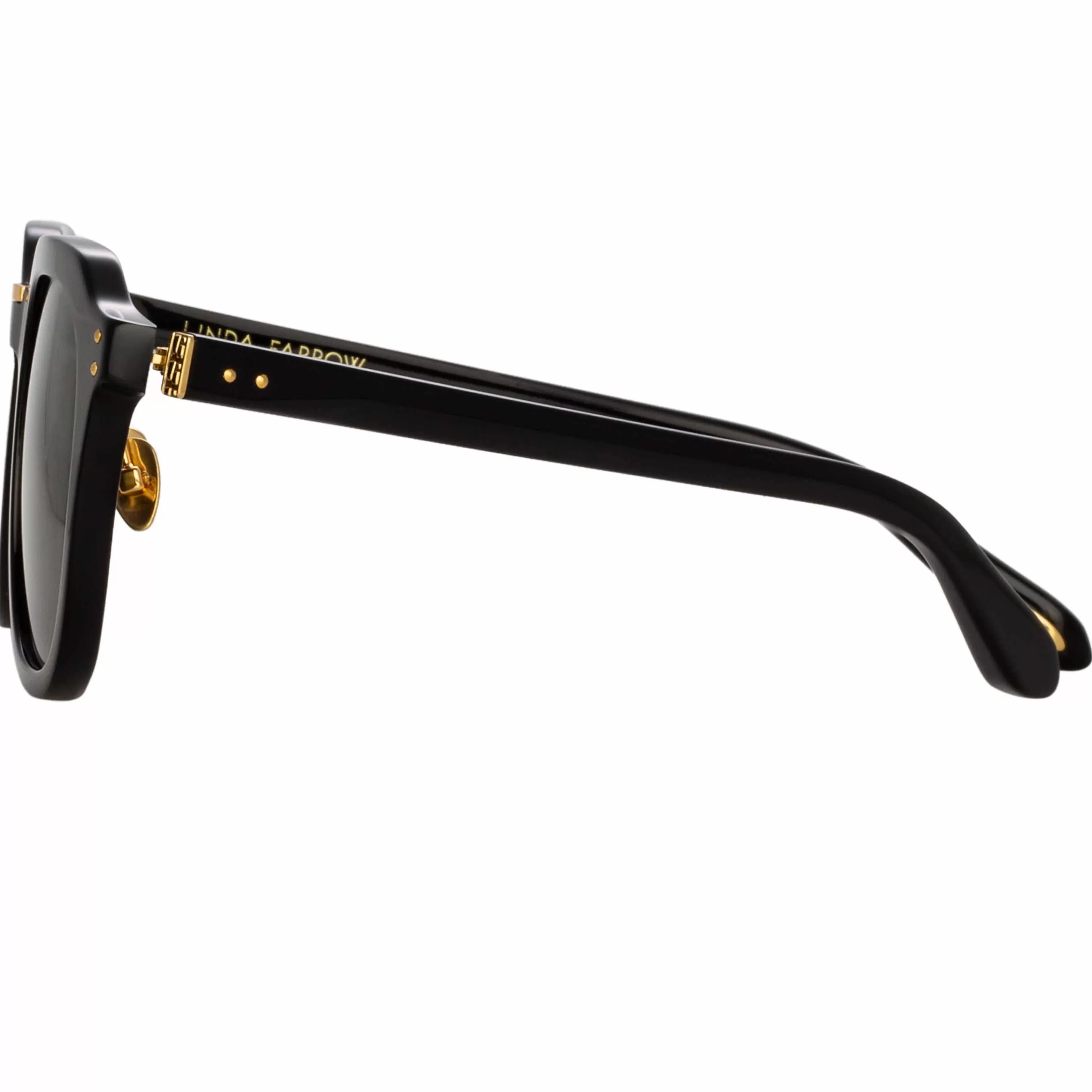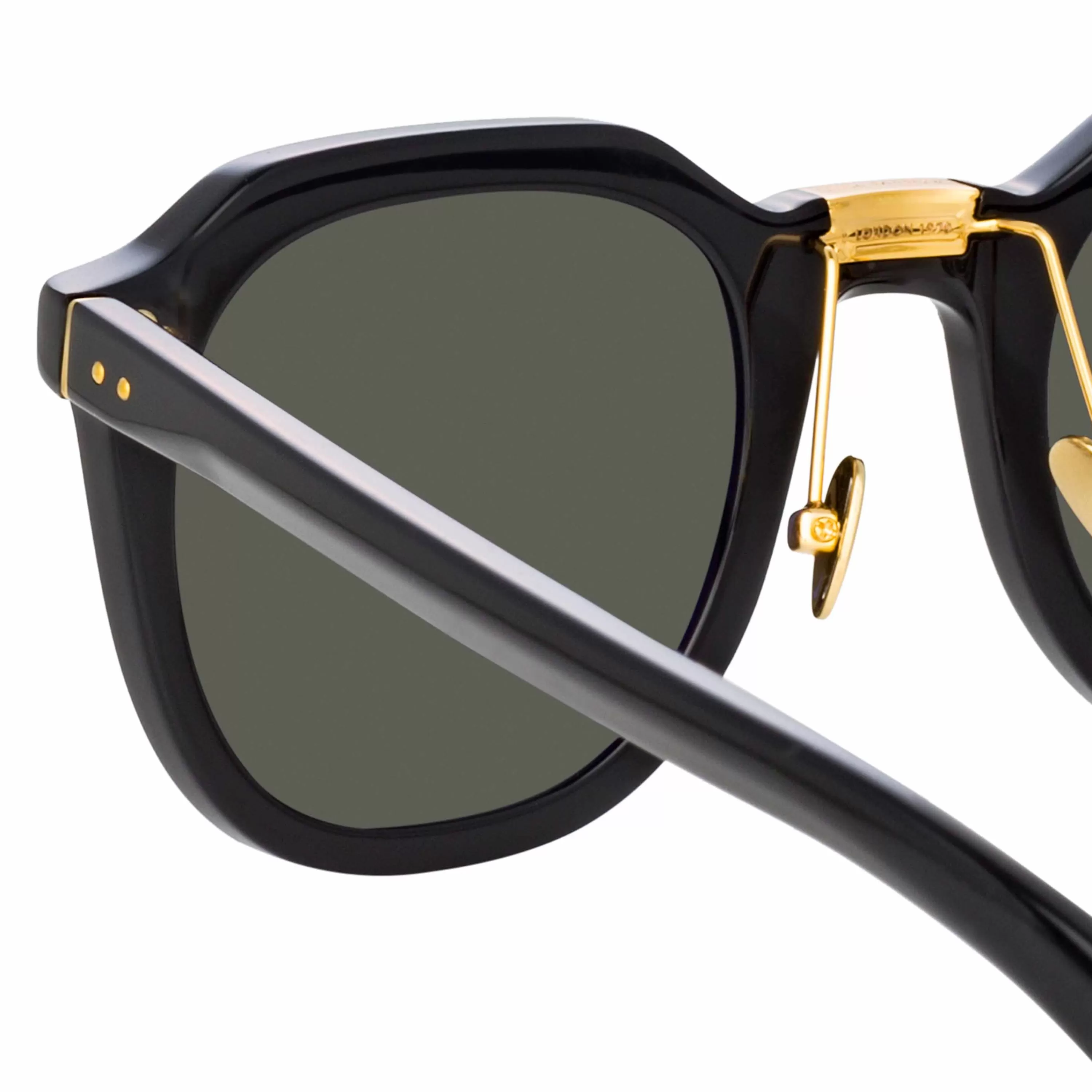 The Fletcher employs subtle detailing to elevate and add intrigue. The angular sunglasses are sculpted from recycled black acetate, facets leading to a squared titanium bridge detail. The 22 carat yellow gold plated accent carries subtle logos and flows into adjustable nose pads for a comfortable fit.