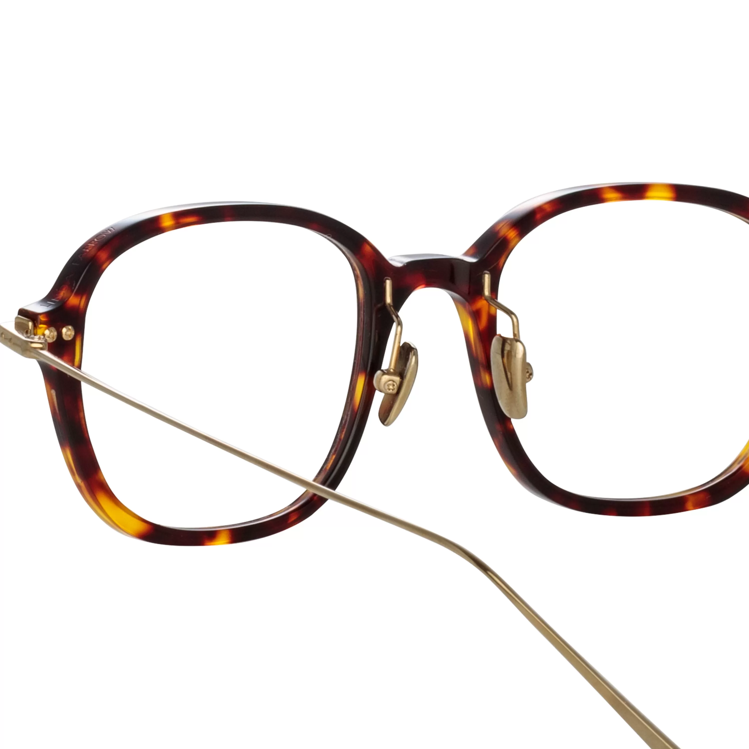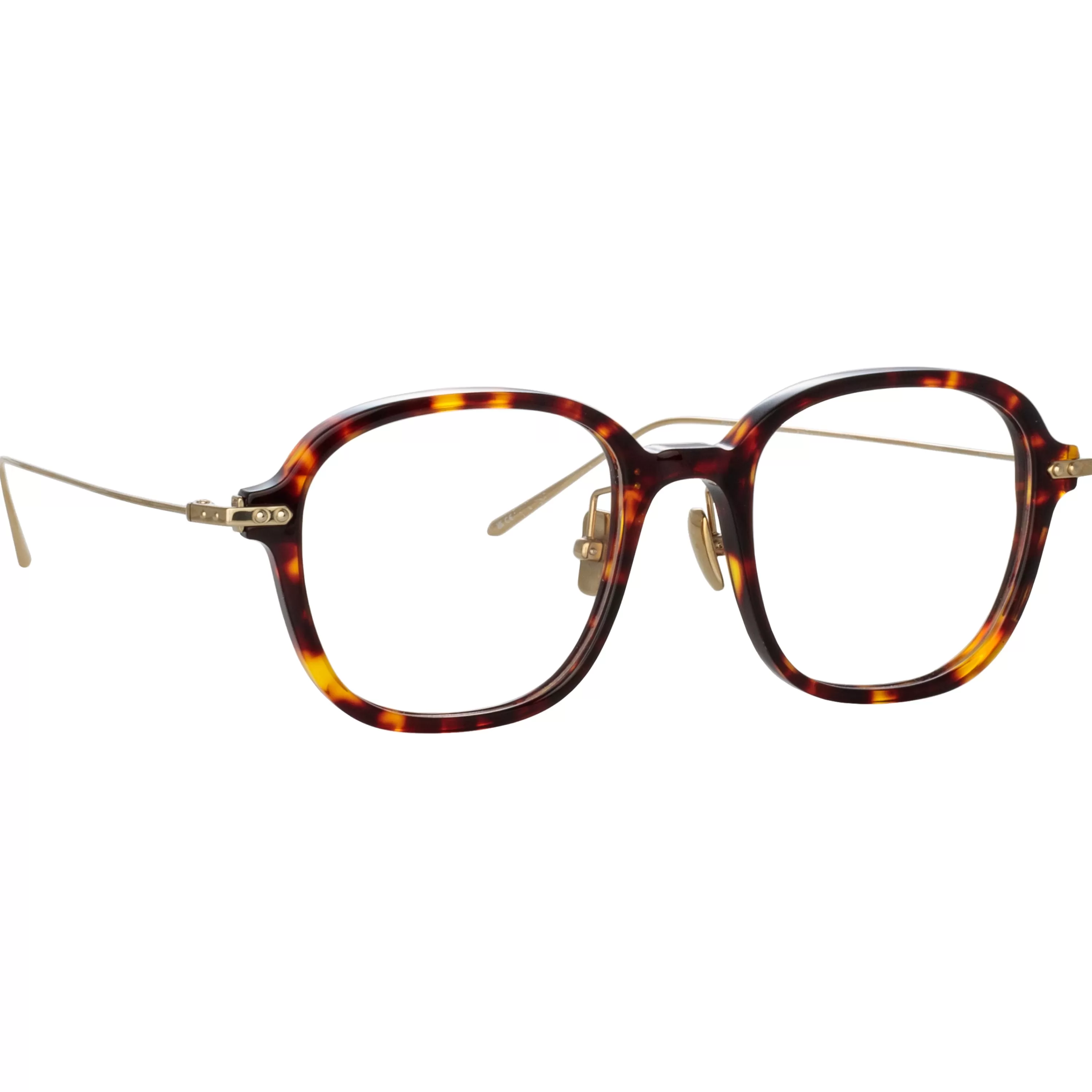 These Square optical frame from the new Linda Farrow LINEAR collection are crafted from tortoiseshell Italian hand polished acetate and ultra lightweight light gold-plated titanium.