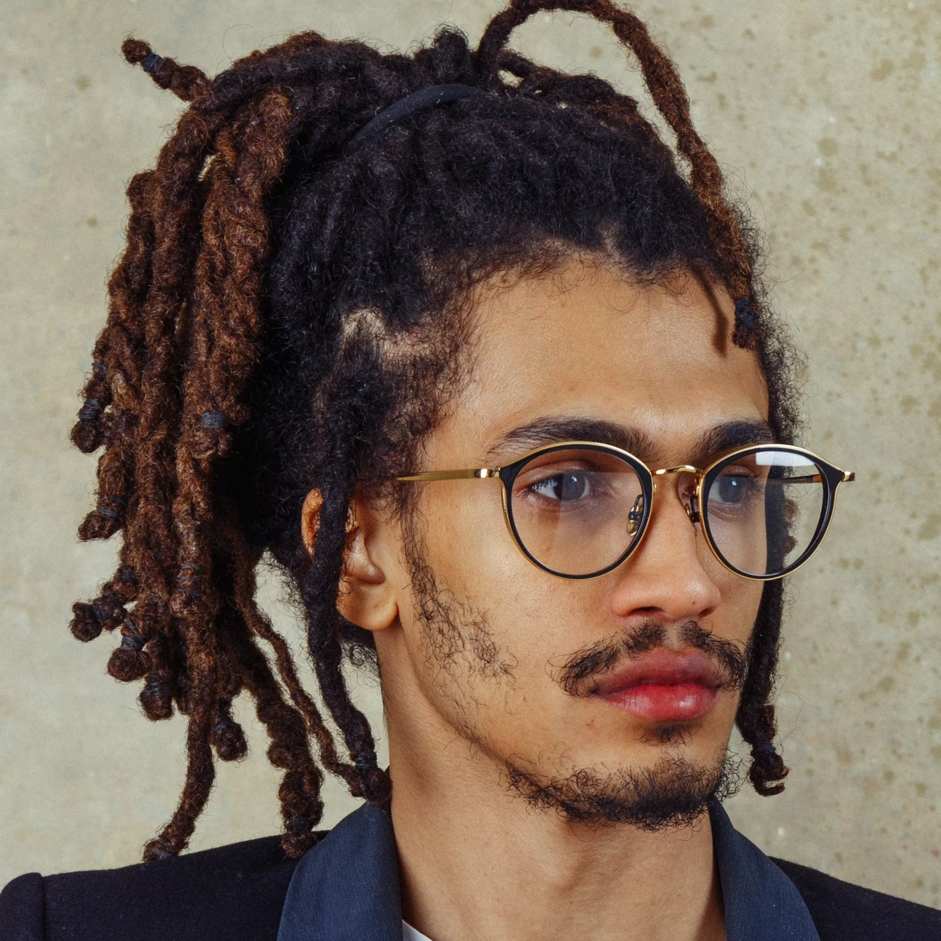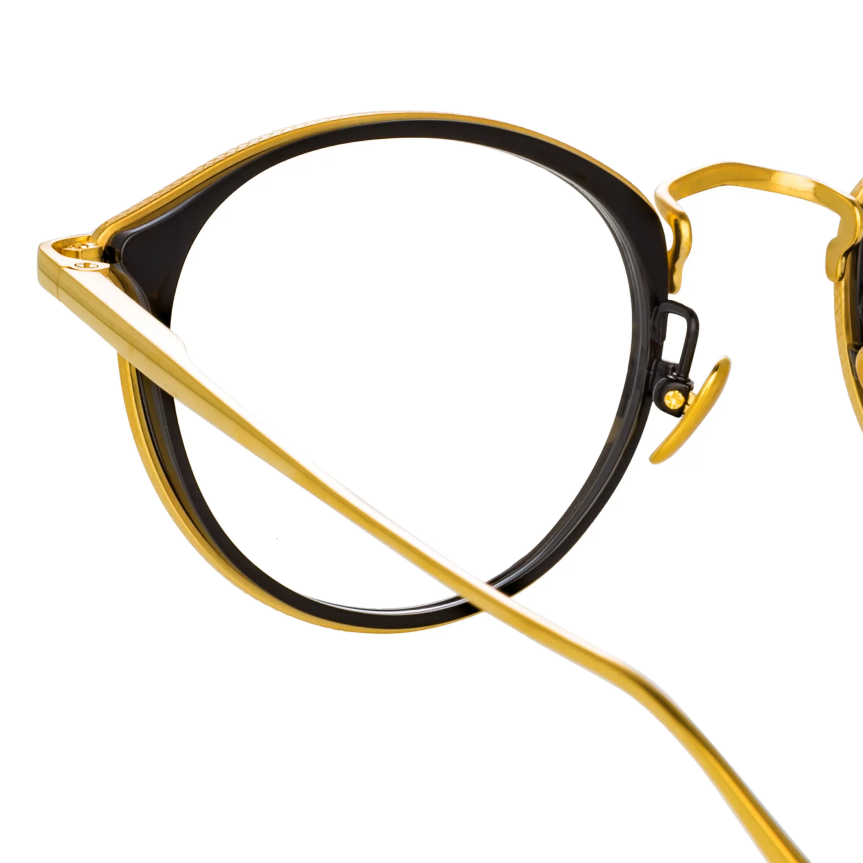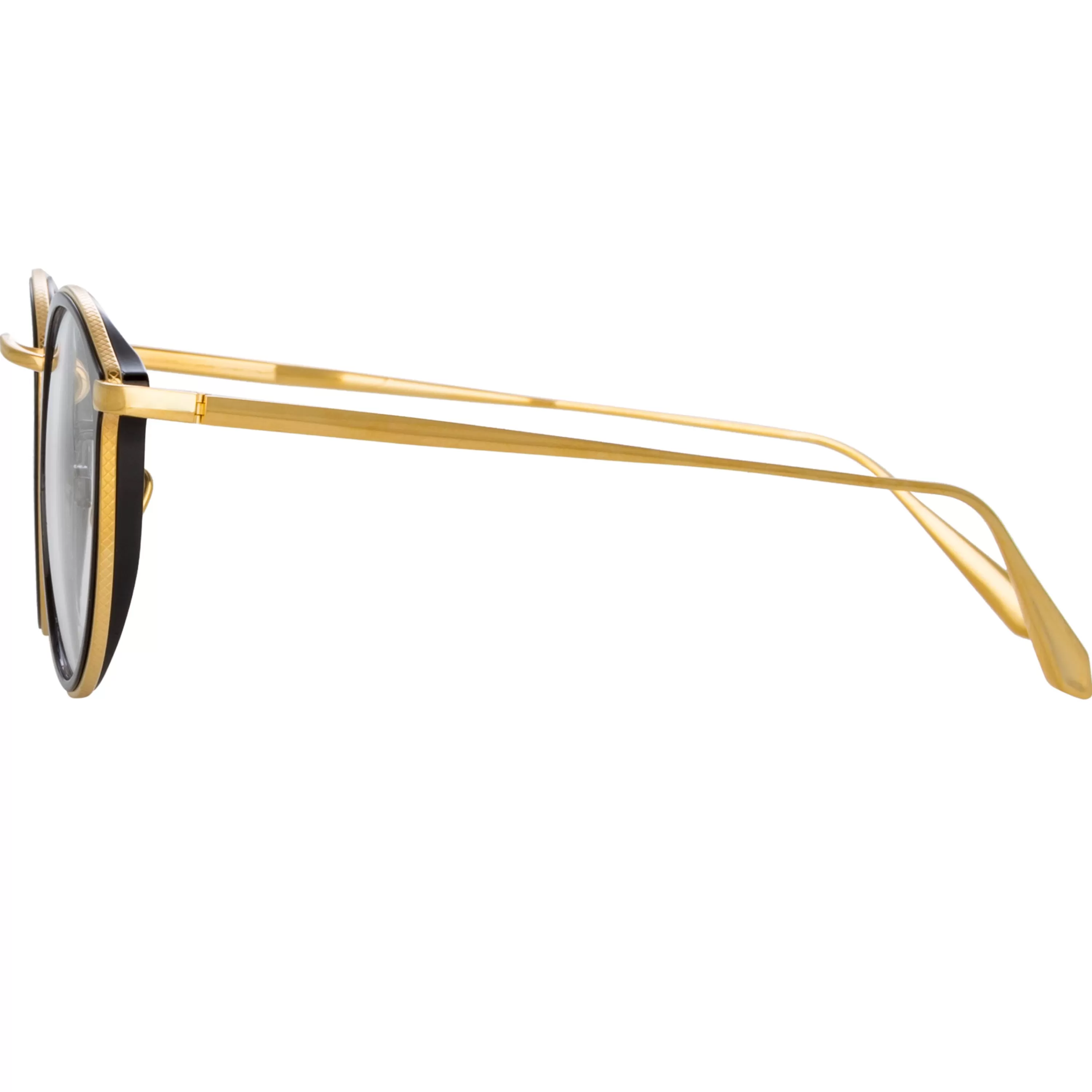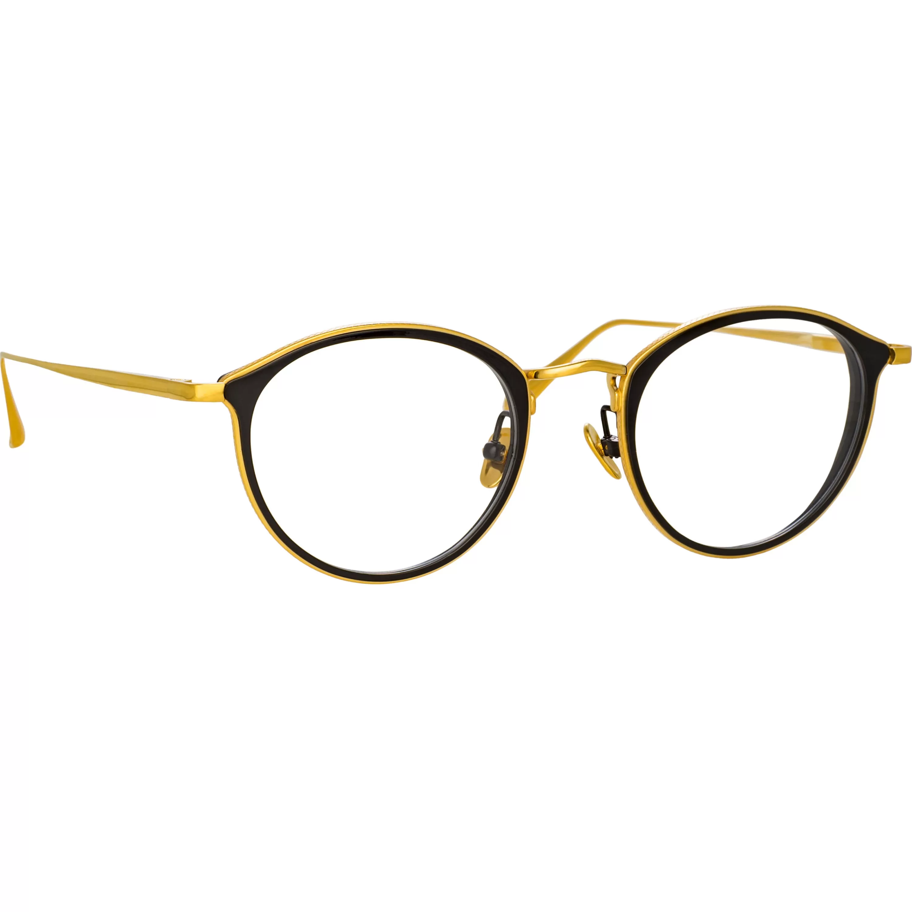 Layers of detail make up the striking form of this LINDA FARROW optical frame. The moulded titanium eye rim graduates from thin to thick at the outer edge for added depth.