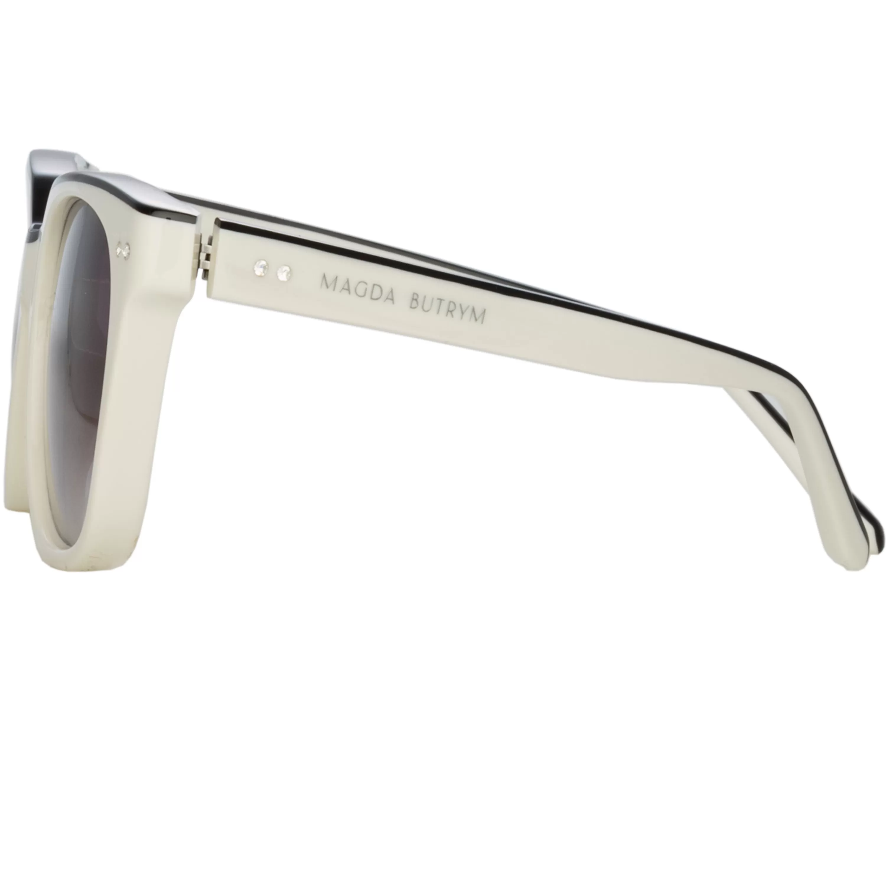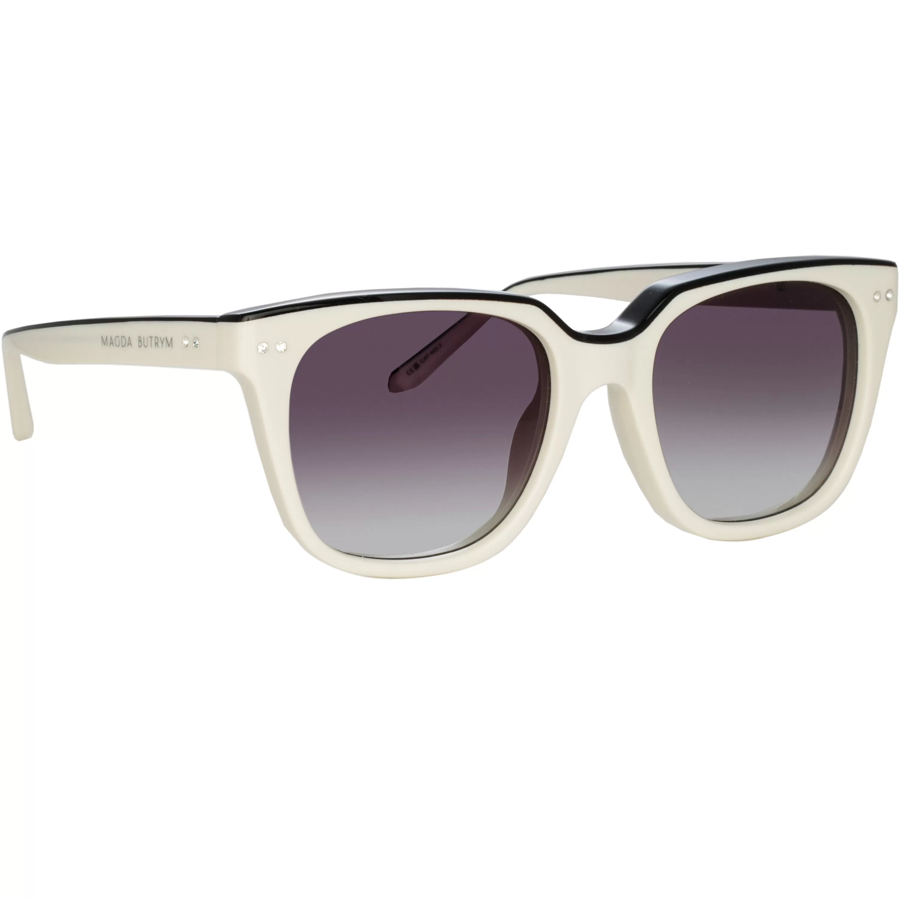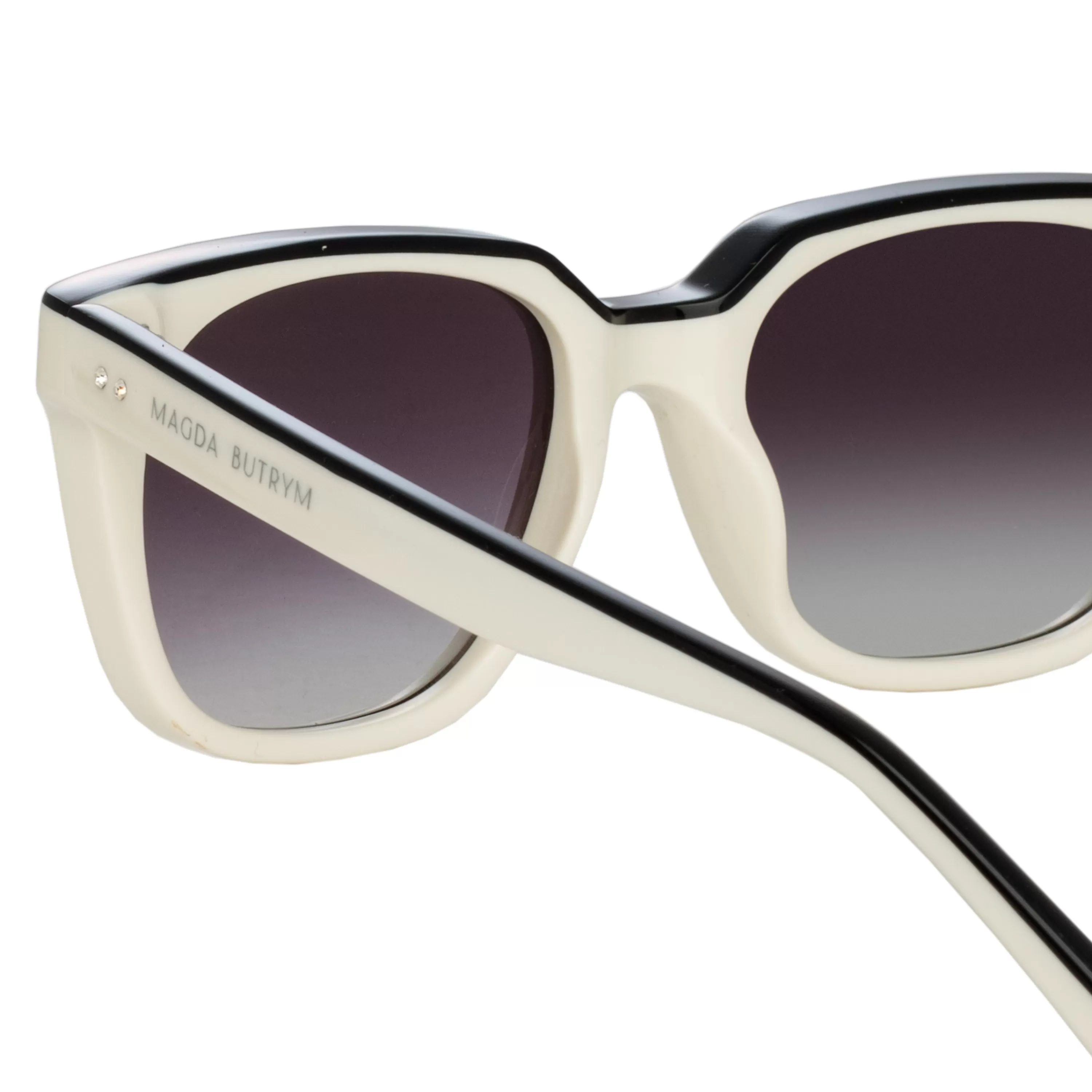 Crafted from white acetate and outlined in black acetate D-frame and grey gradient lenses.