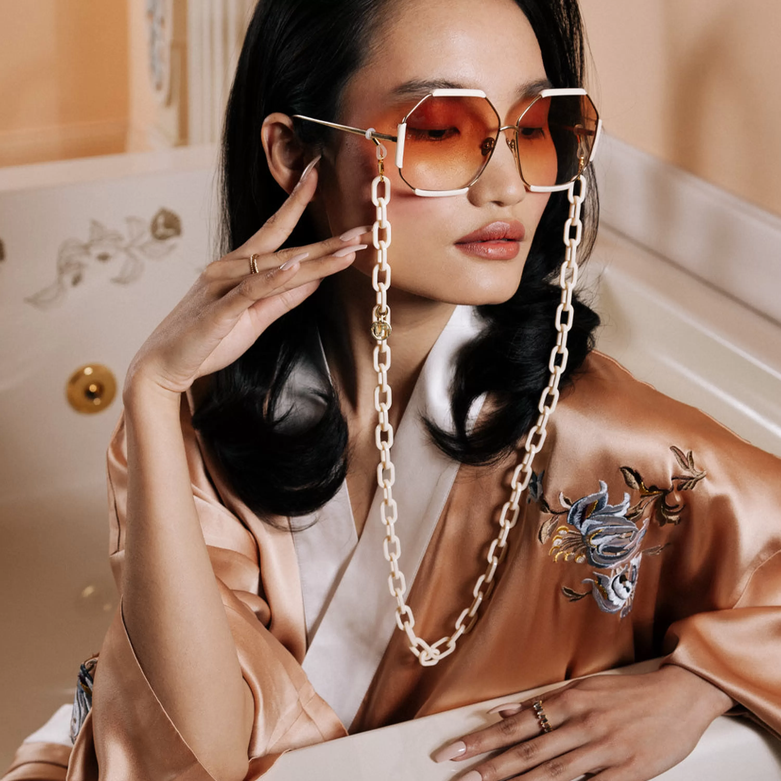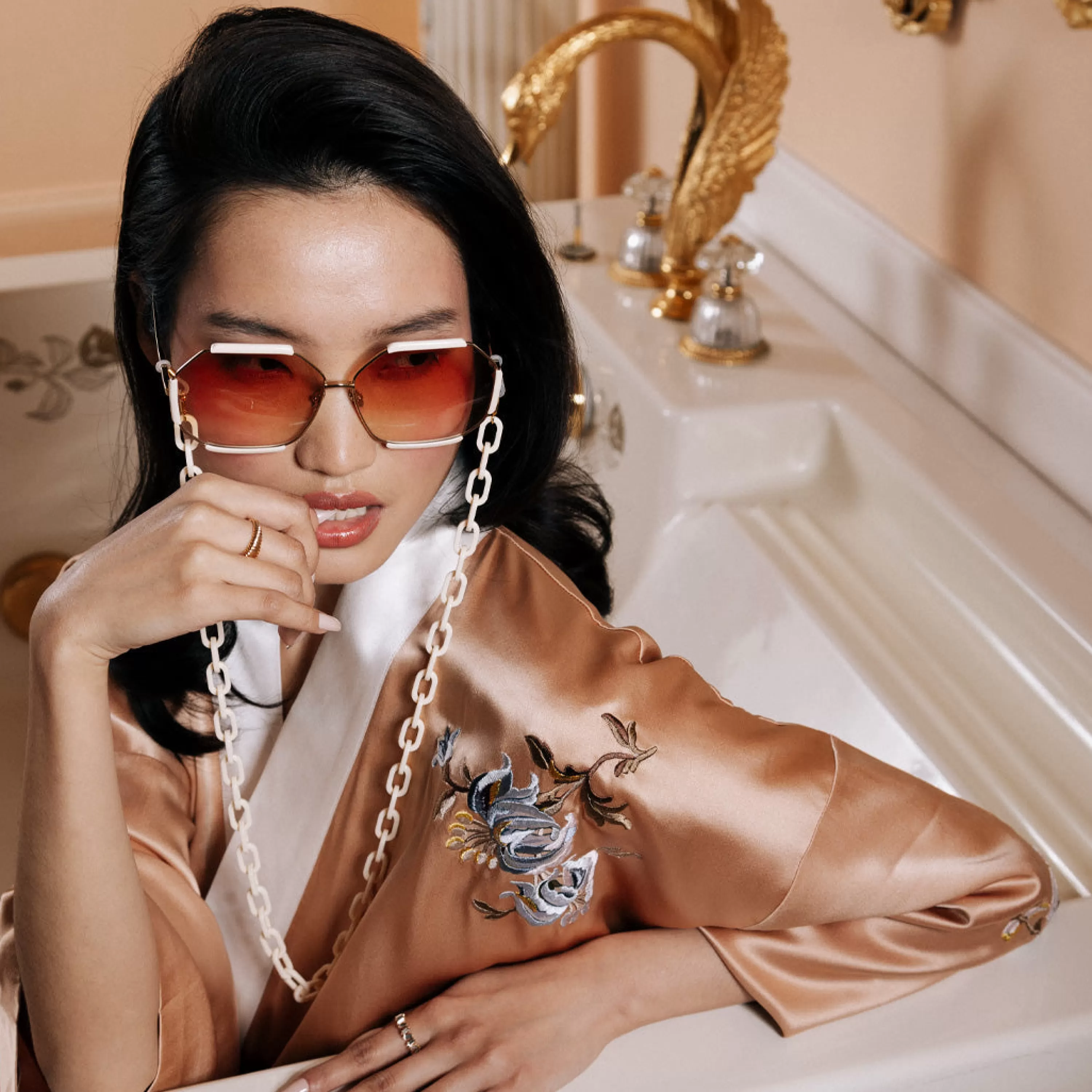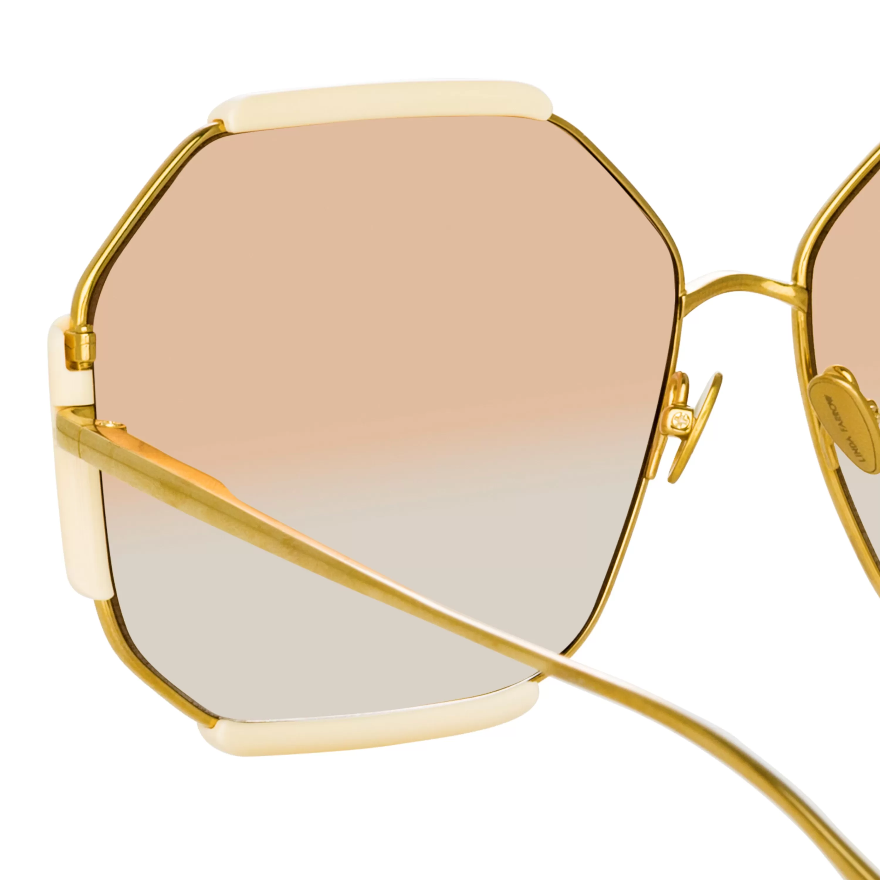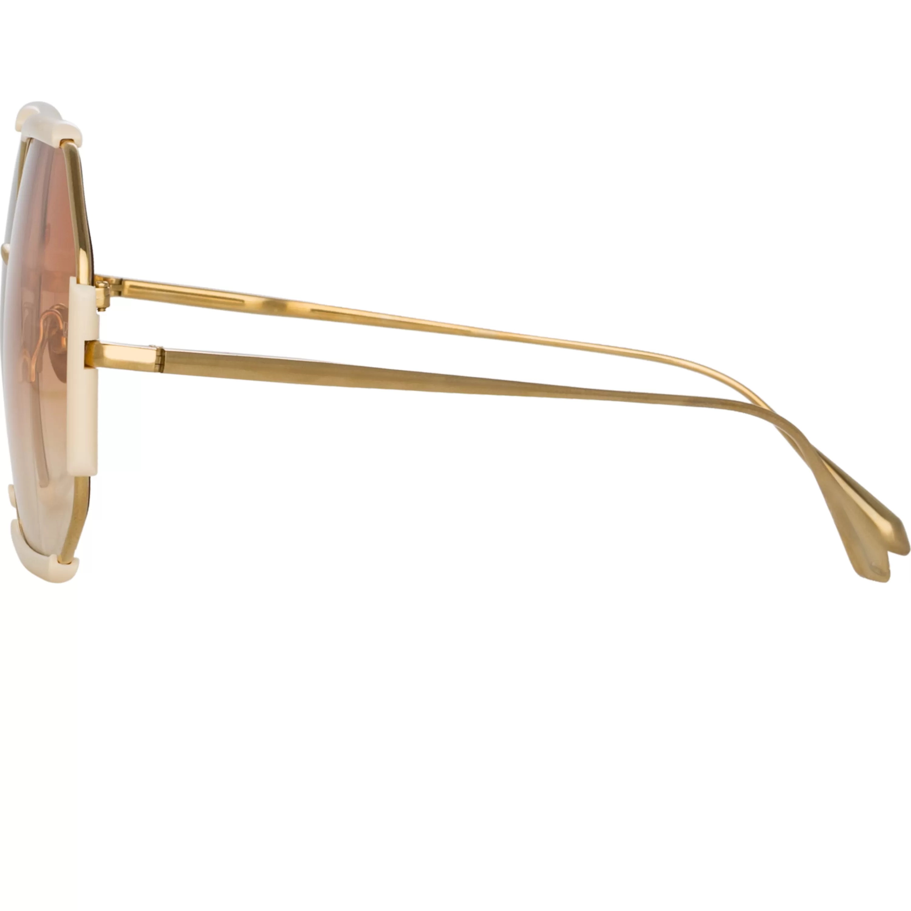 Reminiscent of 1970s playful allure these hexagon sunglasses channel a quintessential LINDA FARROW design language. A delicate 22 carat light gold plated titanium rim is accented with glossy tortoise shell acetate details.