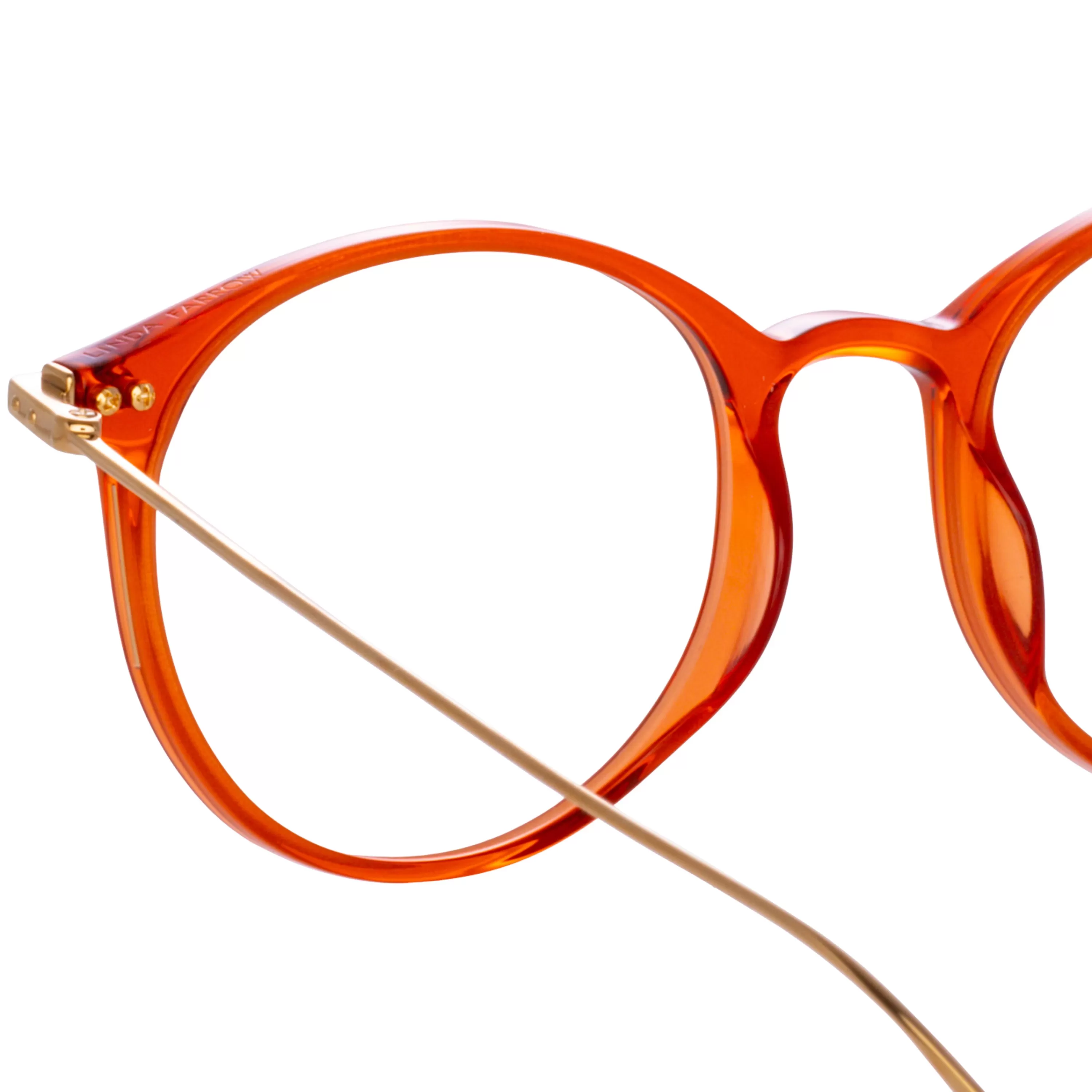 The answer to this season’s classic oval frame. From the new Linda Farrow LINEAR collection, these unisex engineered optical glasses pair amber Italian acetate with ultra-thin 18-22 carat light gold-plated titanium. Detailed with gold linear accents inset the frame, raised pins and a lasered logo, this style is the ultimate in everyday luxury eyewear.Also available in Asian fitting.