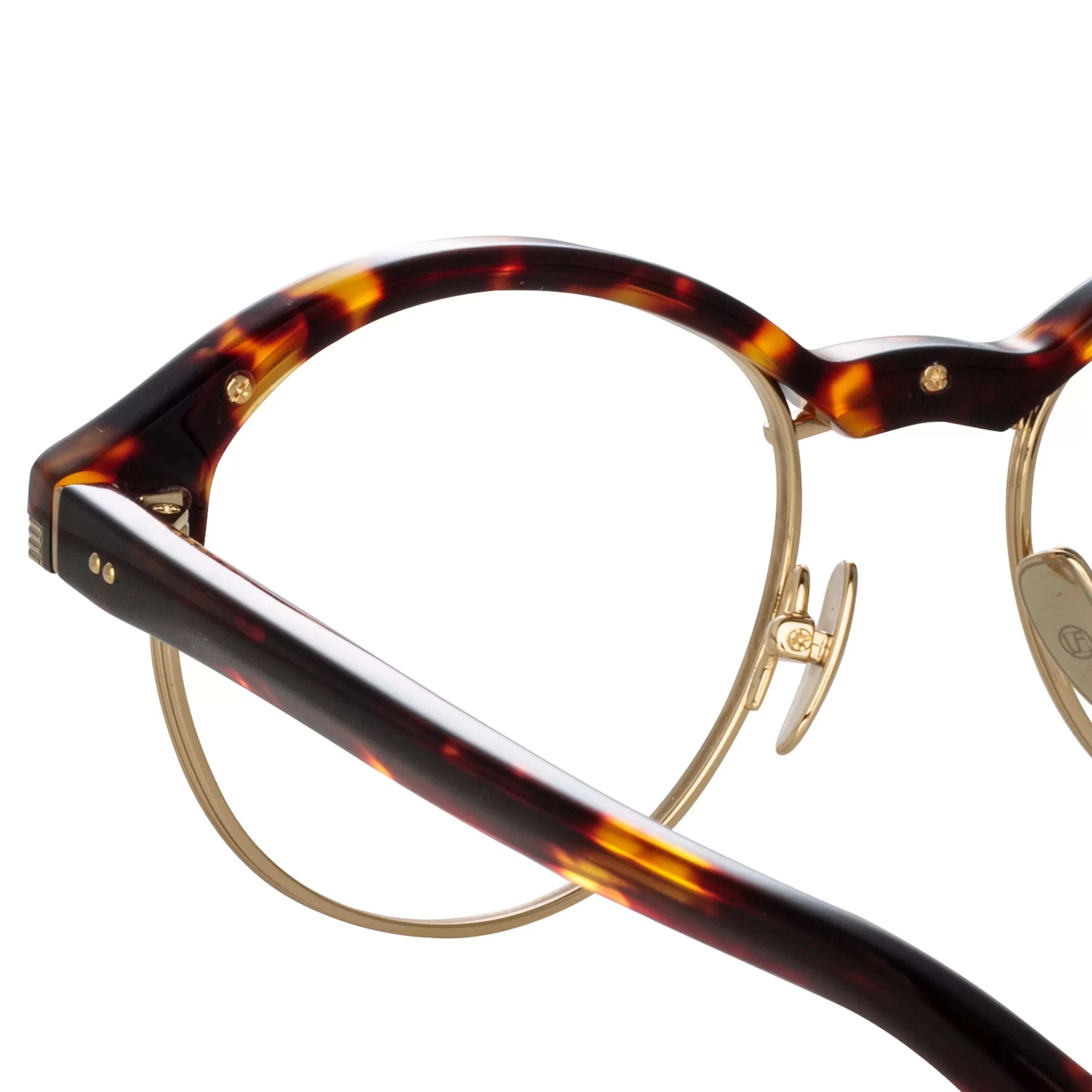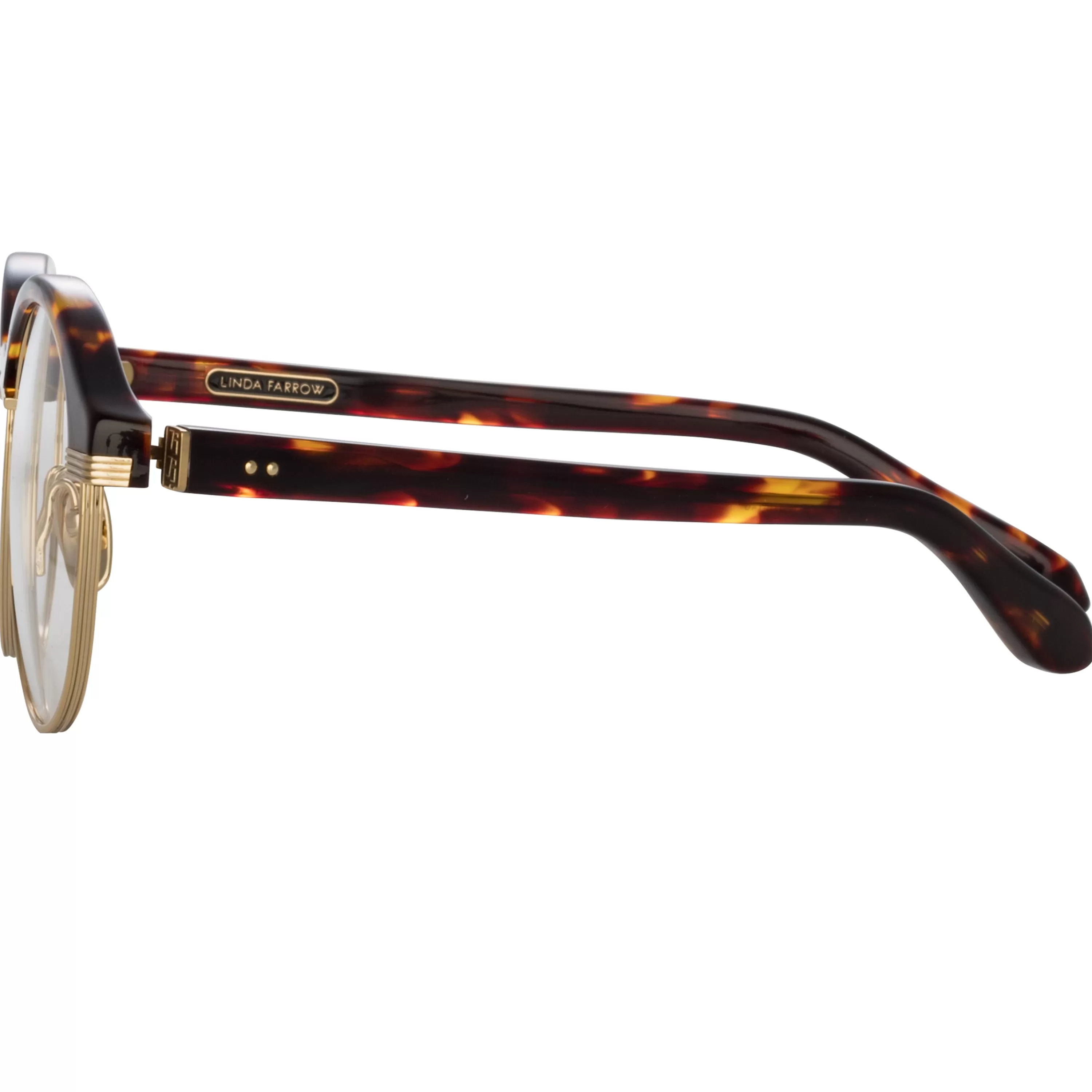 DescriptionThe oval round frame are delicately outlined with a 22 carat light gold titanium rim, contrasted with a t…