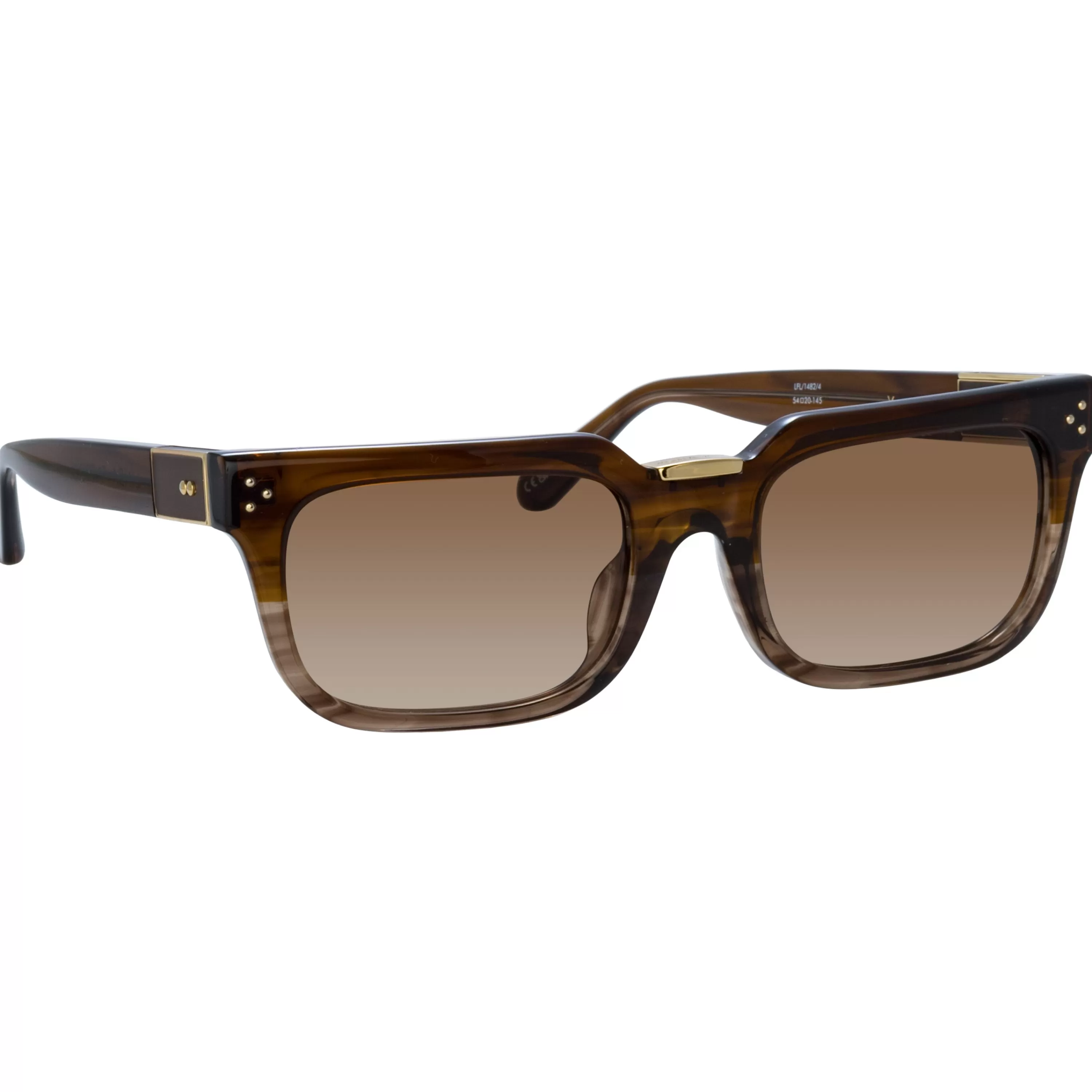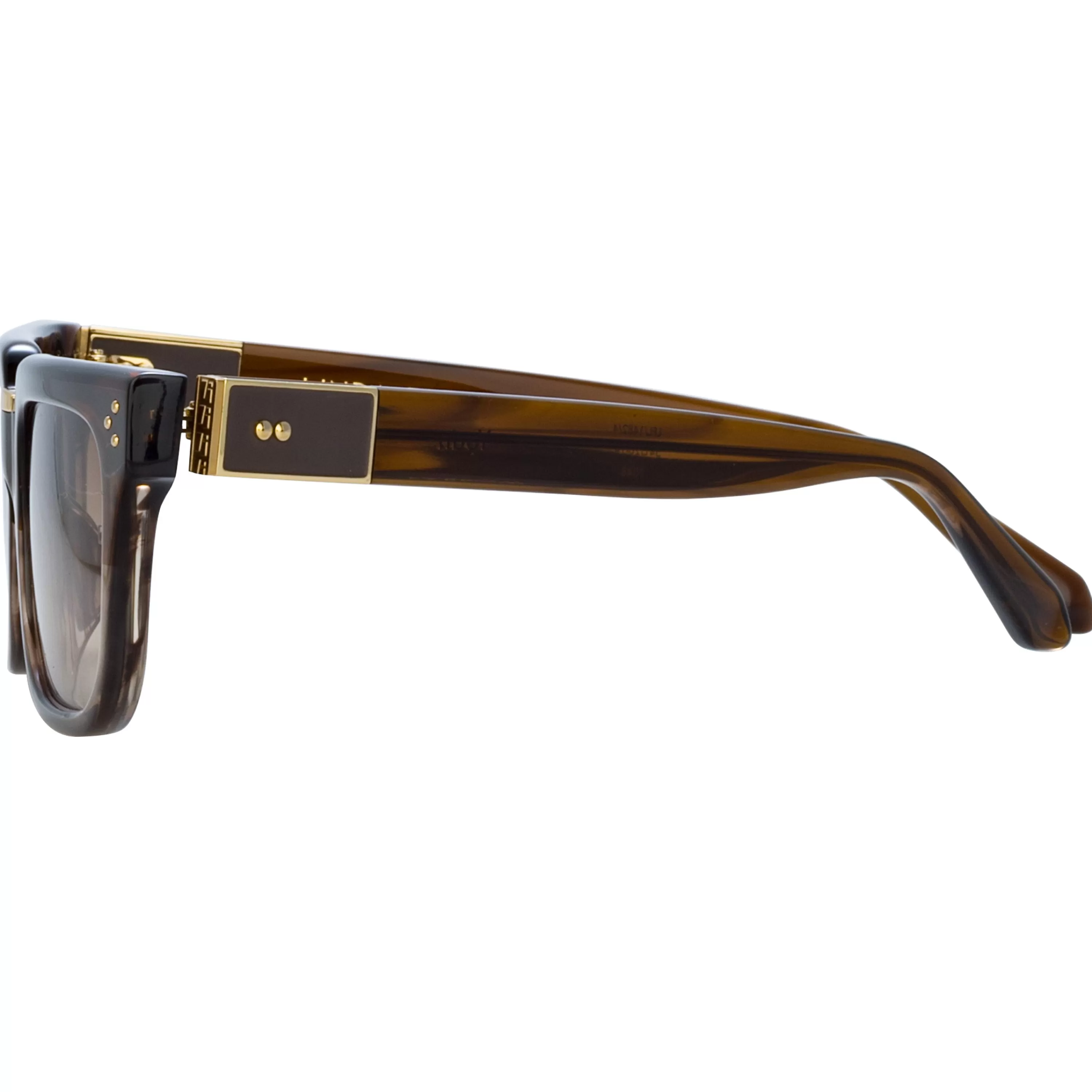Introducing the Yoan frame. Sculpted from tobacco caramel horn, these acetate sunglasses are fitted with mocha gradient lenses.