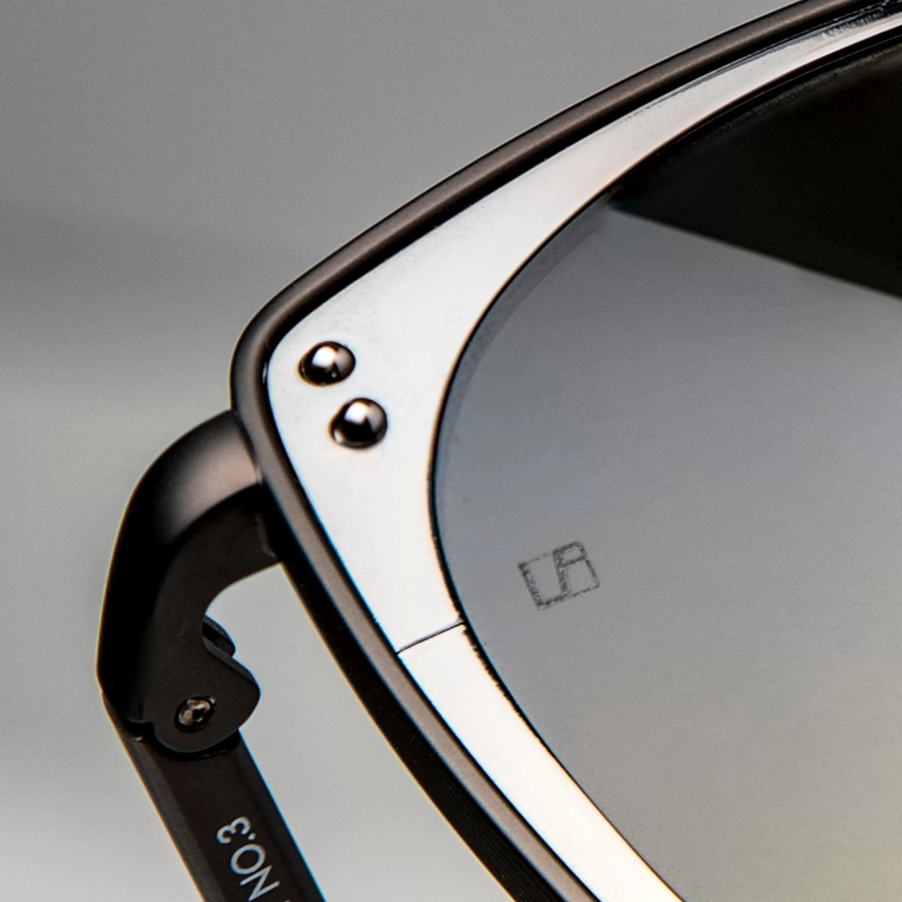 Intricately engineered elements work together to create these square frames by LINDA FARROW. Crafted from pure Japanese titanium outer rim is delicately etched with fine lines for a textured finish.
