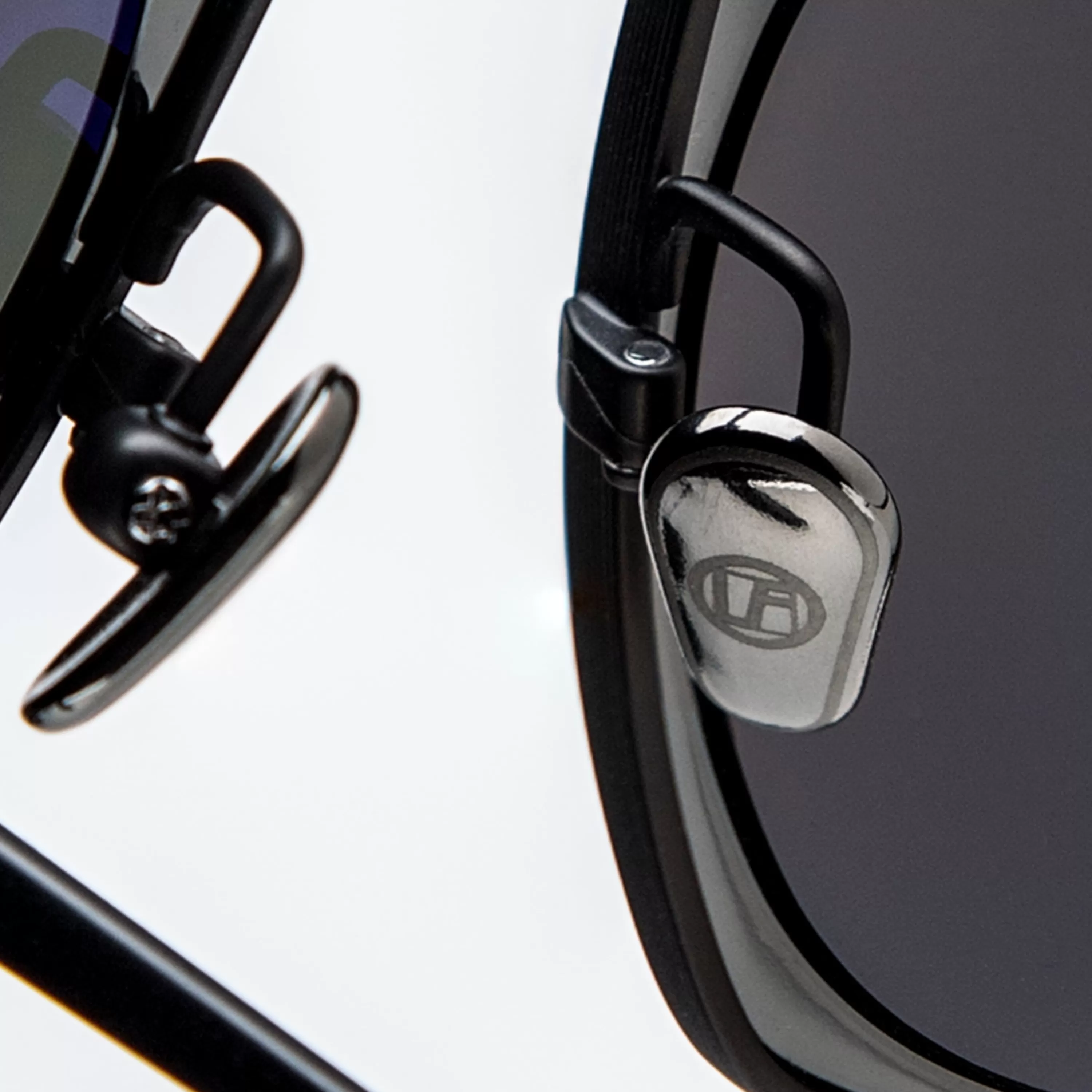 Intricately engineered elements work together to create these square frames by LINDA FARROW. Crafted from pure Japanese titanium with a matt nickel colour plating outer rim is delicately etched with fine lines for a textured finish.