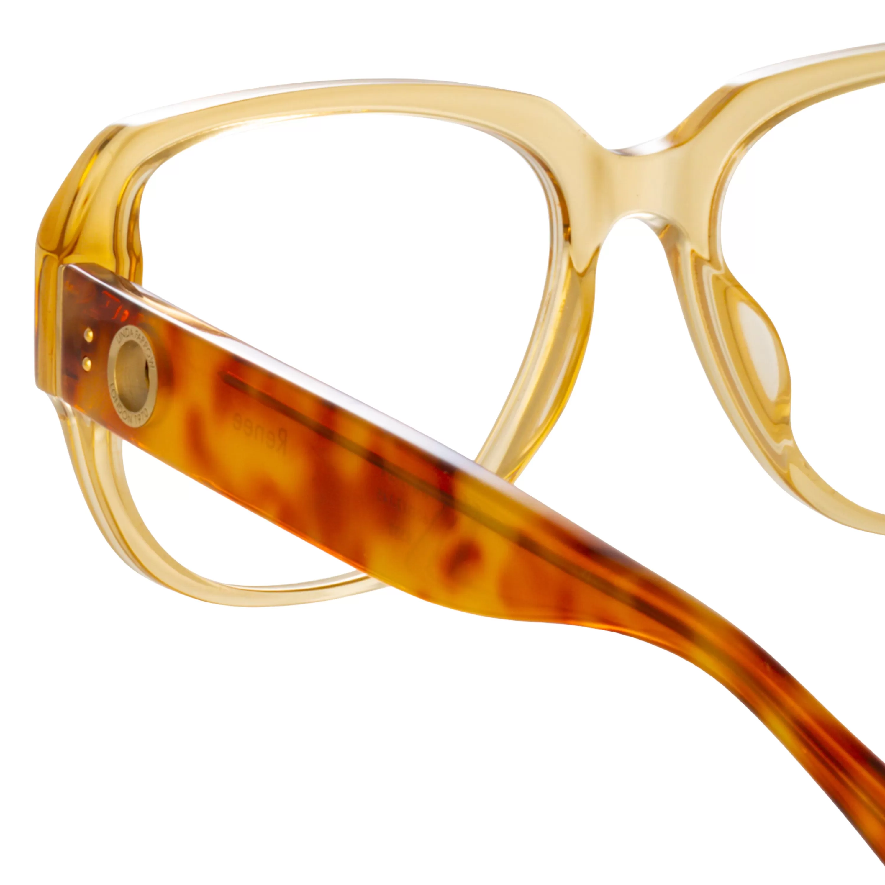 A bold experimentation of smooth curves and angled facets the Renee optical glasses are a statement piece.