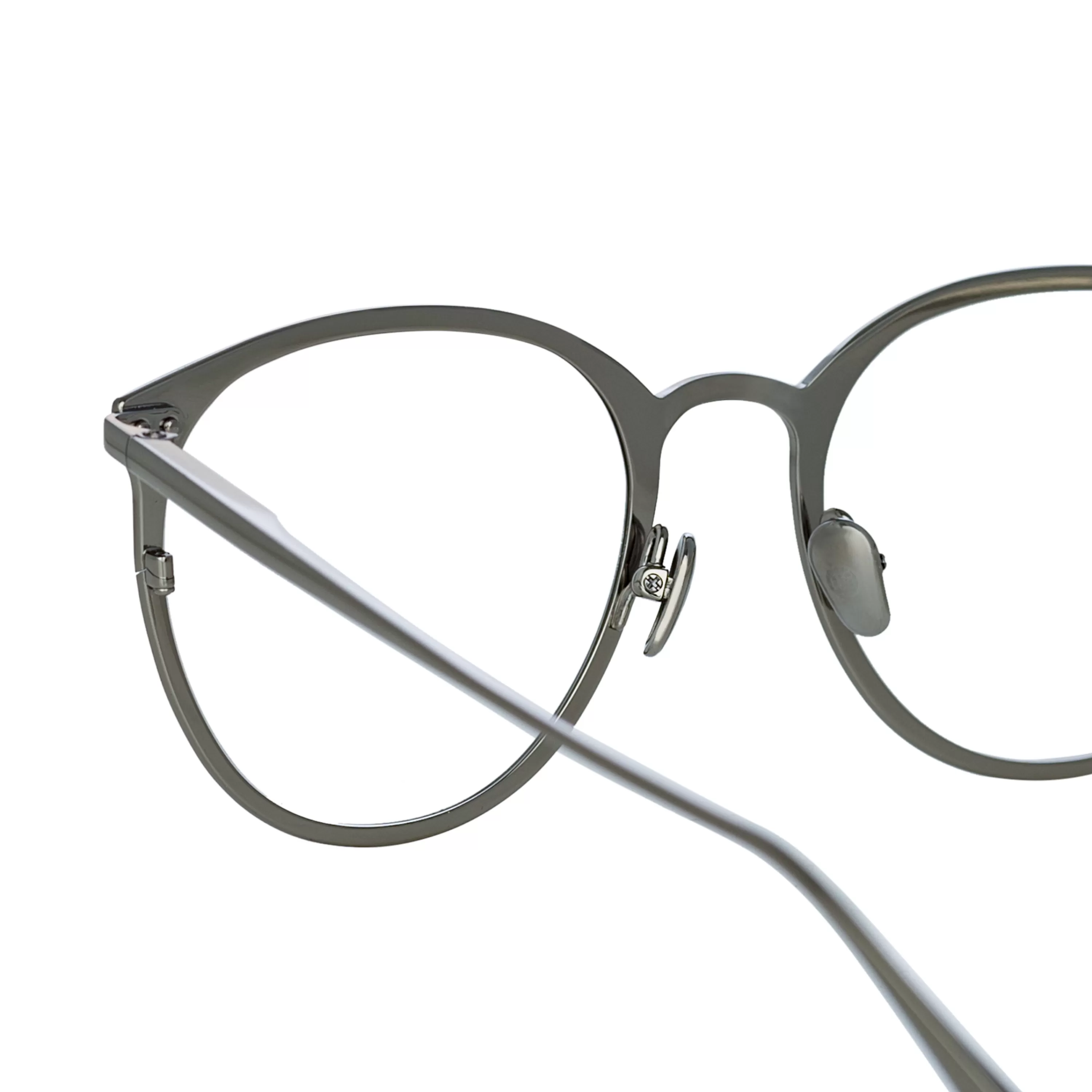 These classic oval optical frames from the LINDA FARROW collection are modernised with an industrialised finish.