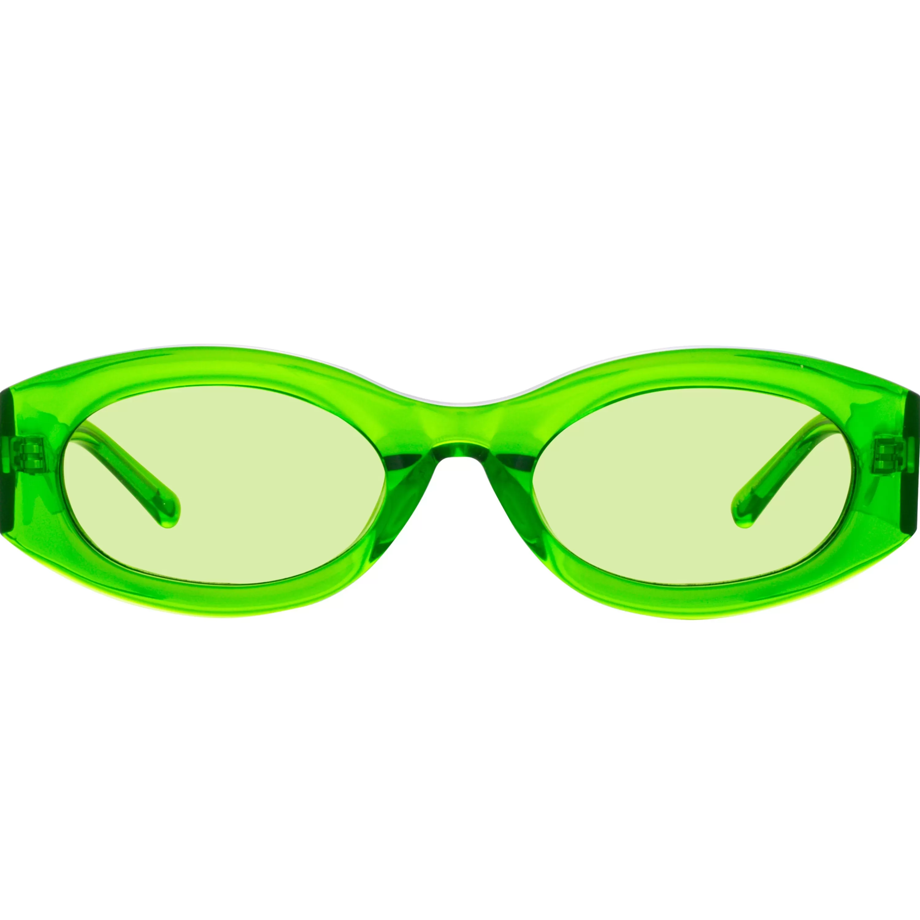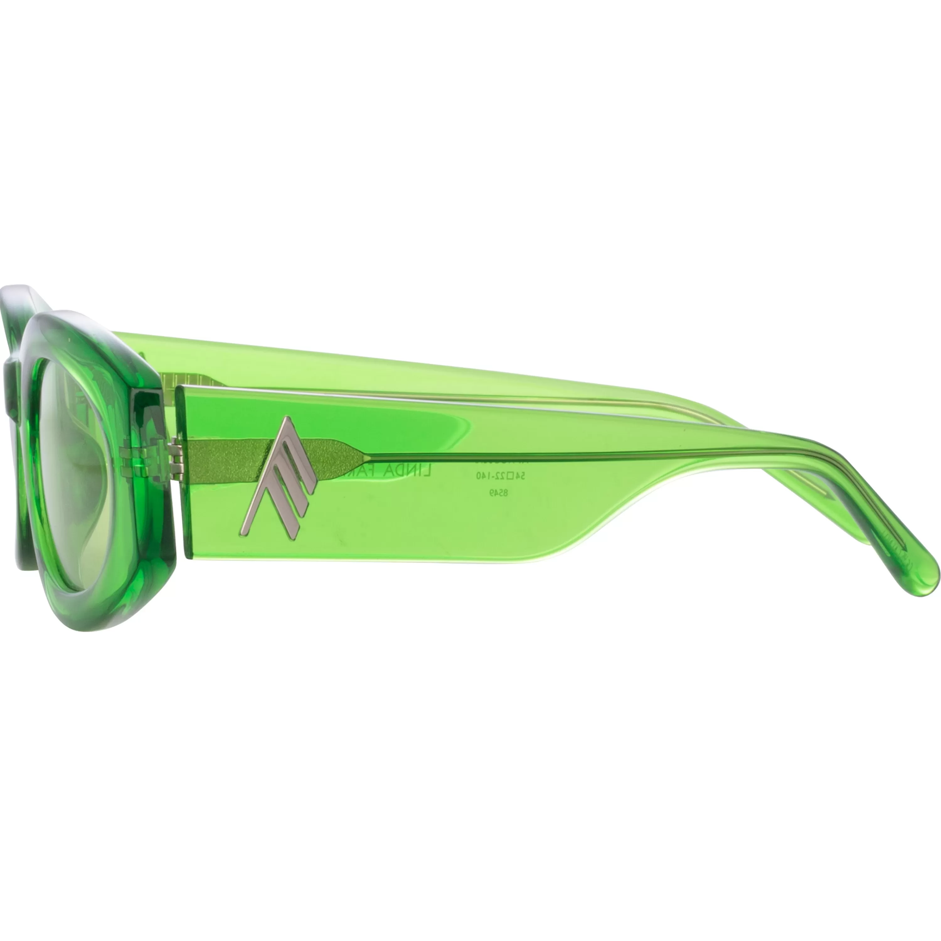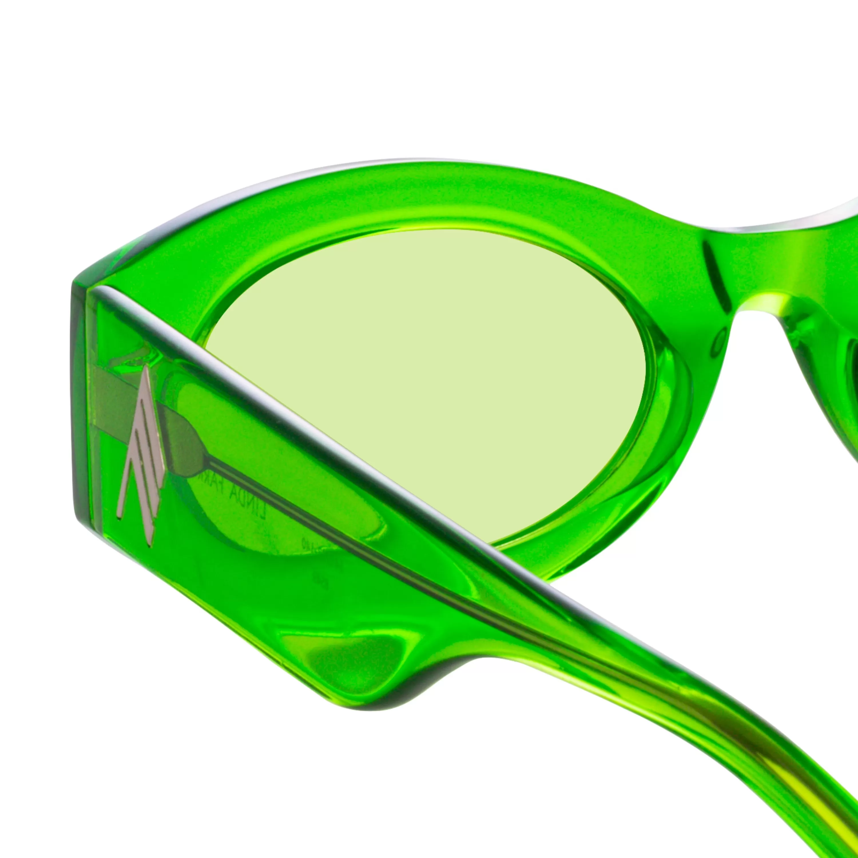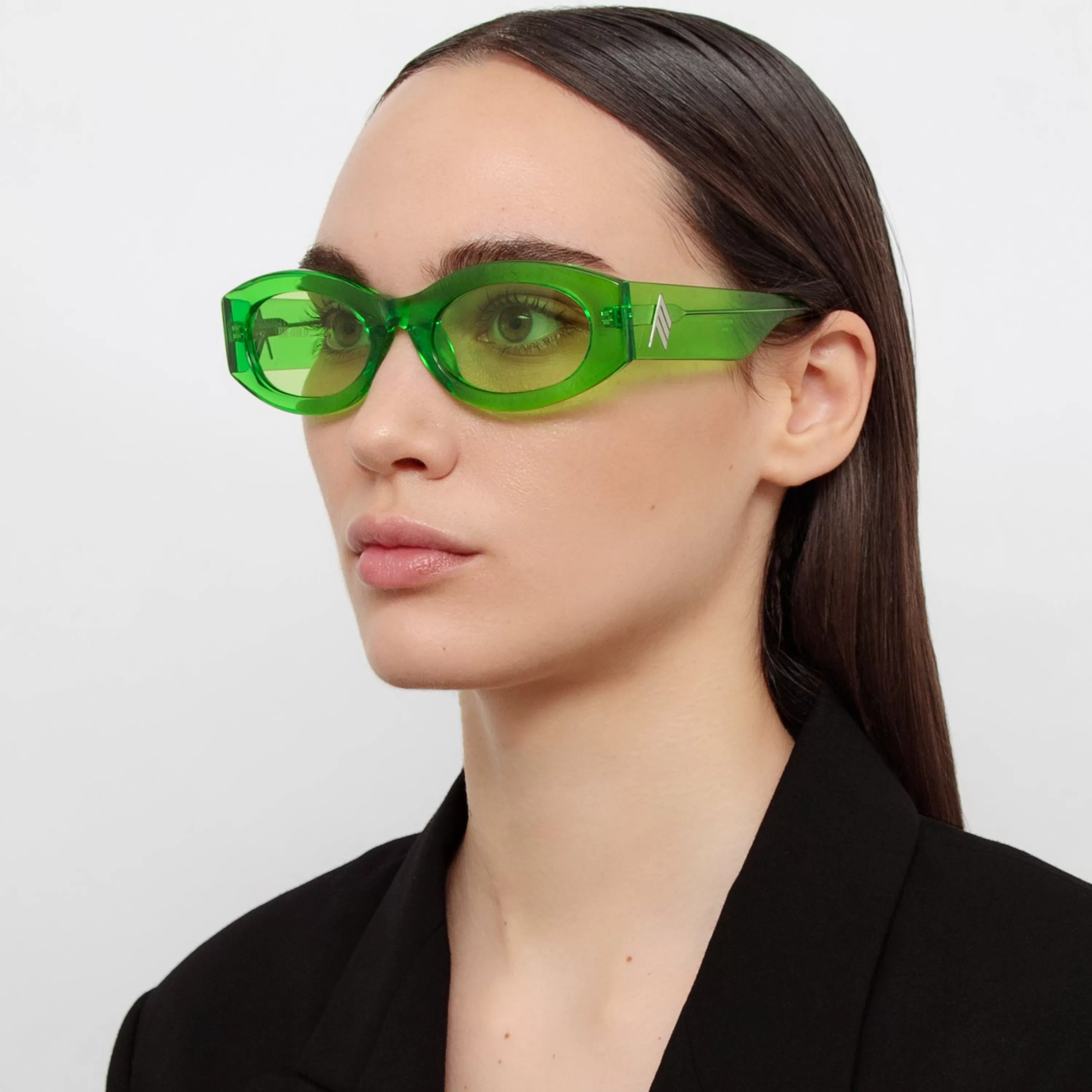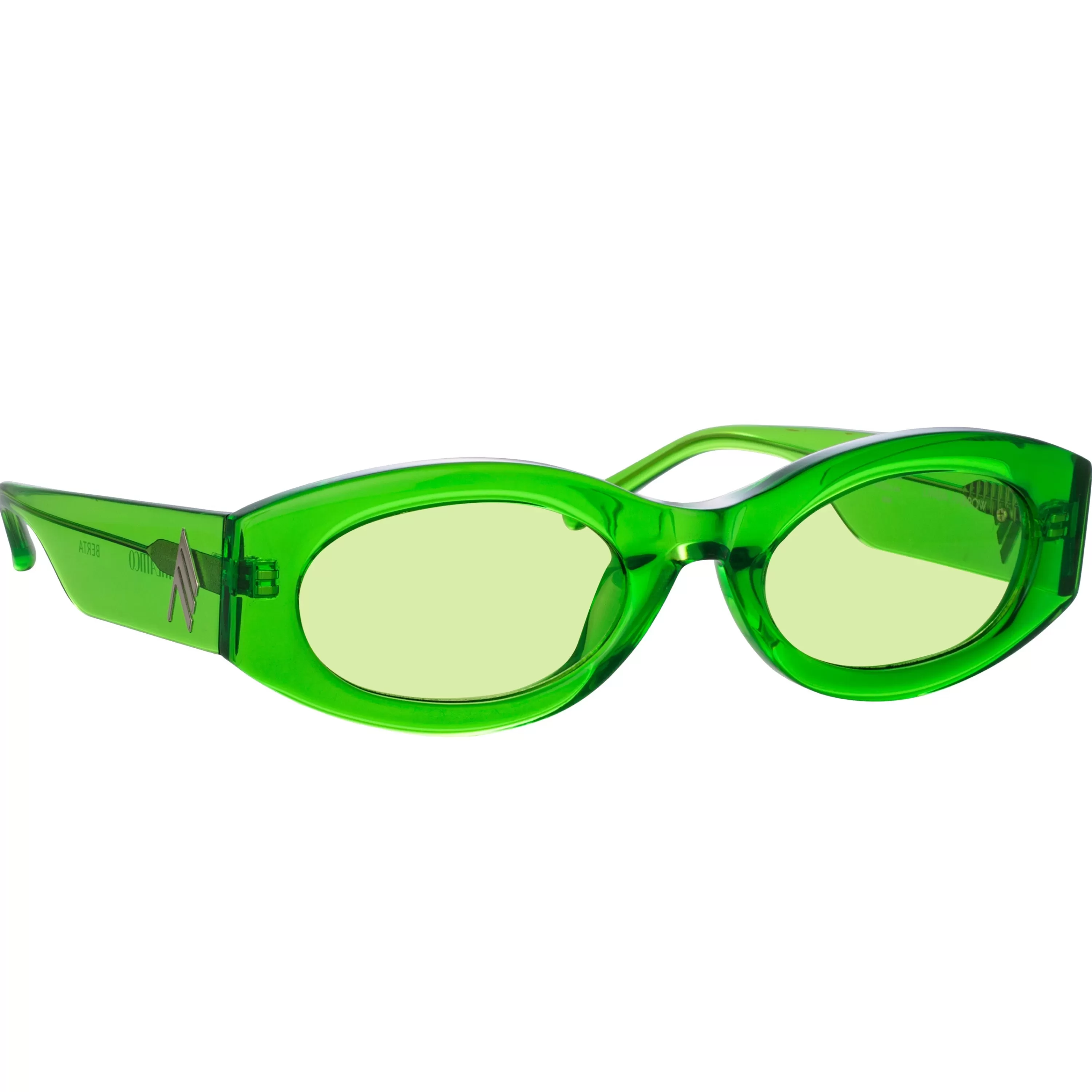 Introducing Berta the newest addition to the LINDA FARROW + The Attico collaboration. The oval sunglasses are sculpted from green acetate and hand polished for a luxurious high shine.