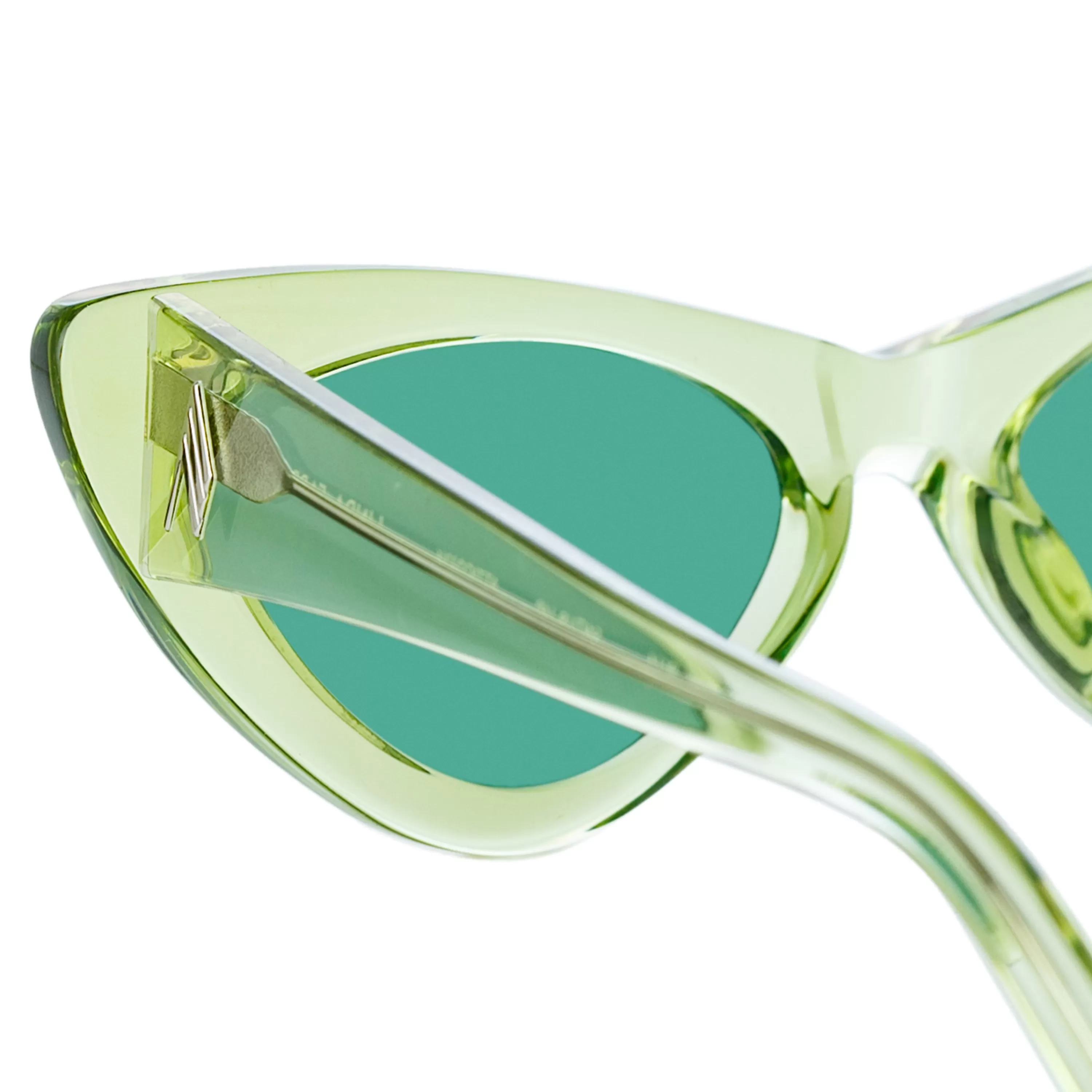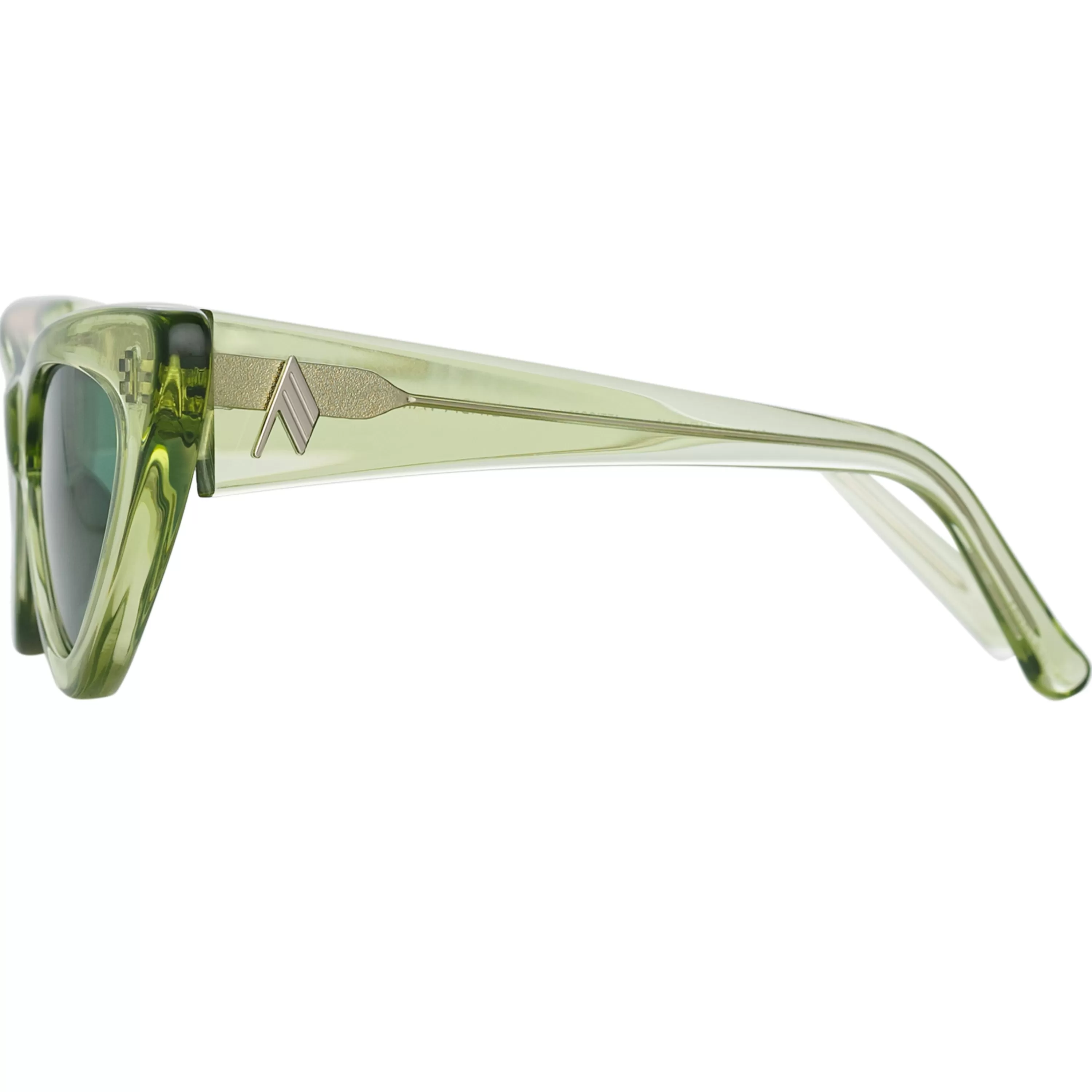 This high drama cat eye from LINDA FARROW’s collaboration with The Attico is realised in a fresh lime green for the season. The acetate sunglasses are highly polished with sculpted nose pads.