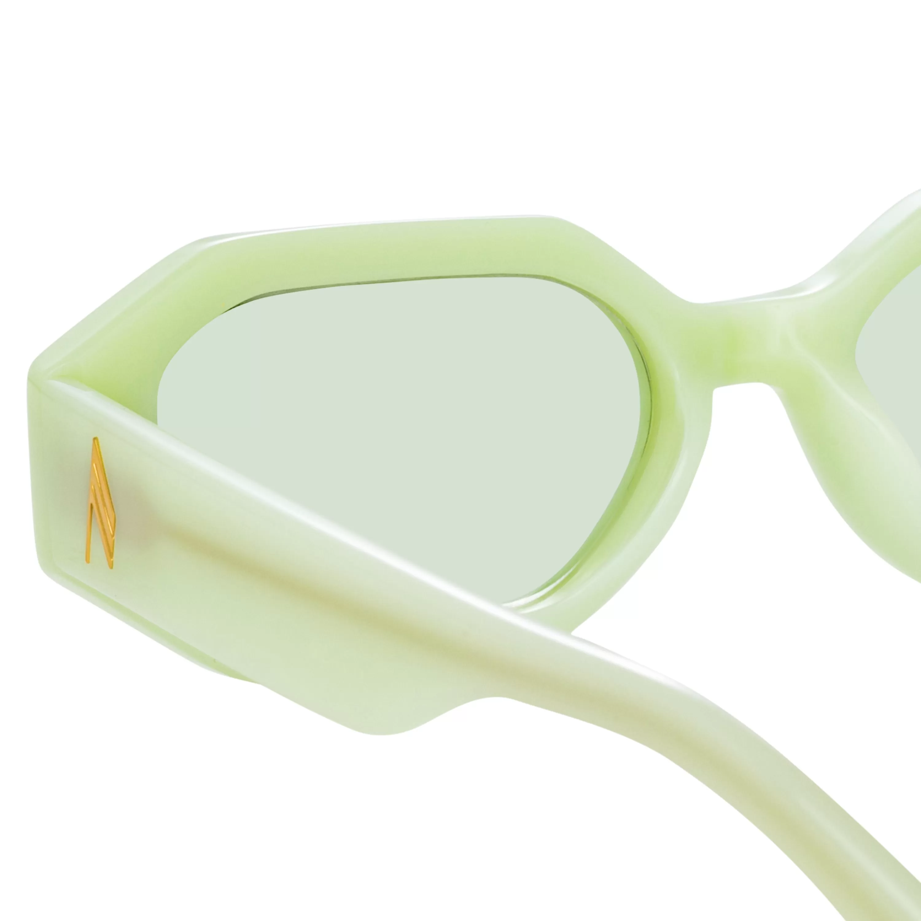 A core silhouette from our collaboration with The Attico, the Irene sunglasses are introduced in new seasonal shades. Sculpted from a mint green acetate the angular hexagonal frames are highly polished to bring softness to their edge.
