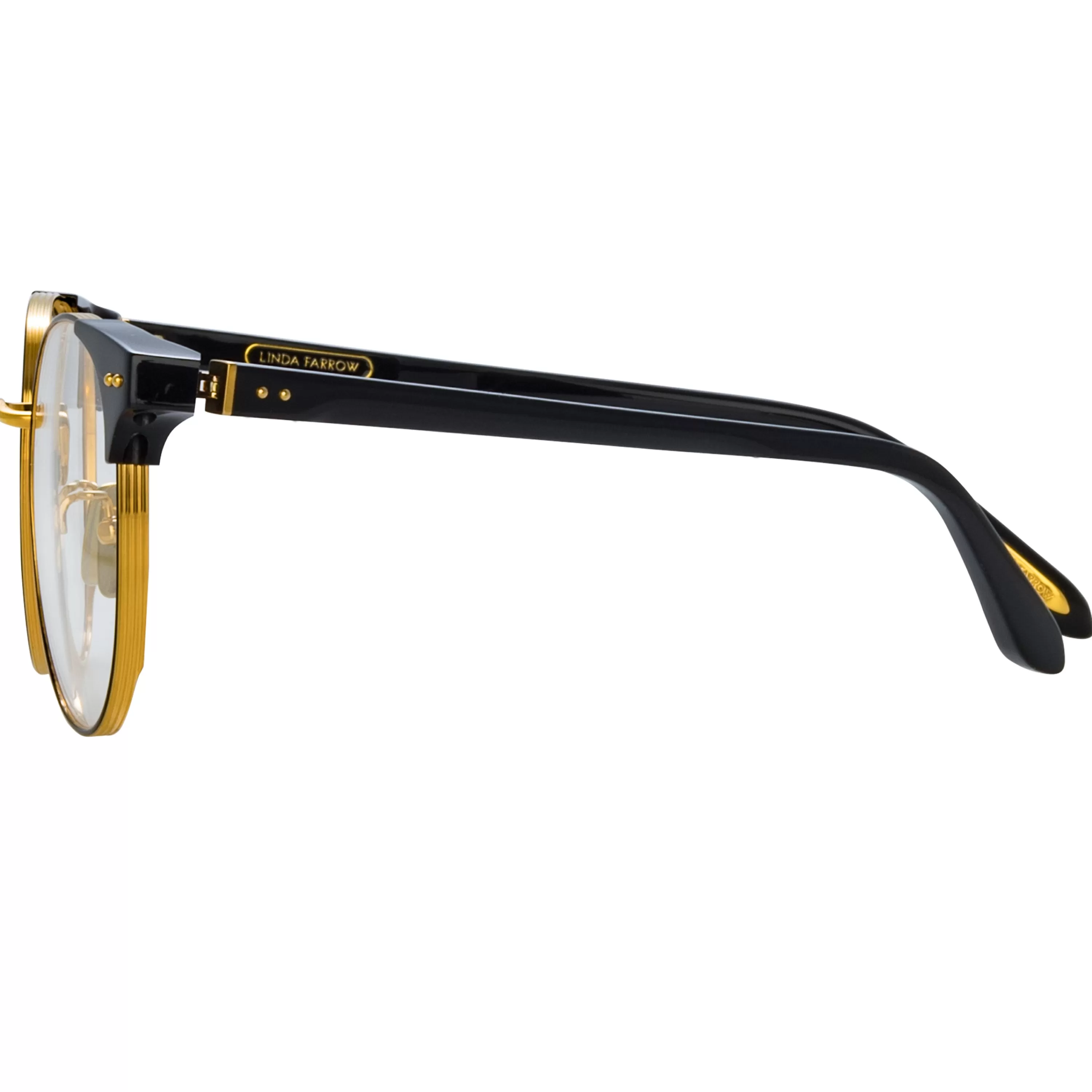 With an aesthetic that’s firmly rooted in the world of architecture and design, these unisex oval optical glasses from the new Linda Farrow AW24 collection offers a sophisticated blend of luxurious yellow gold titanium frame with black acetate temples. .
