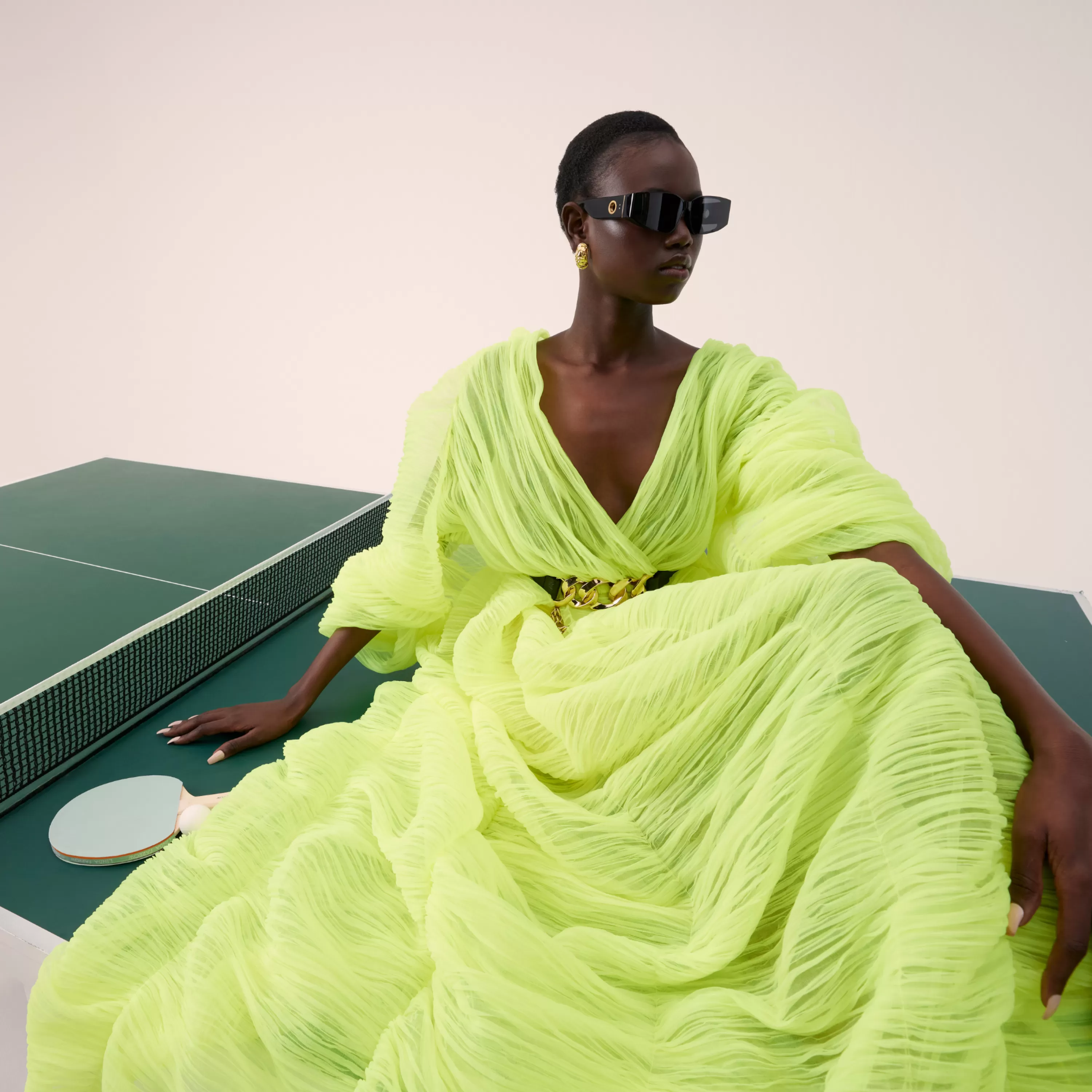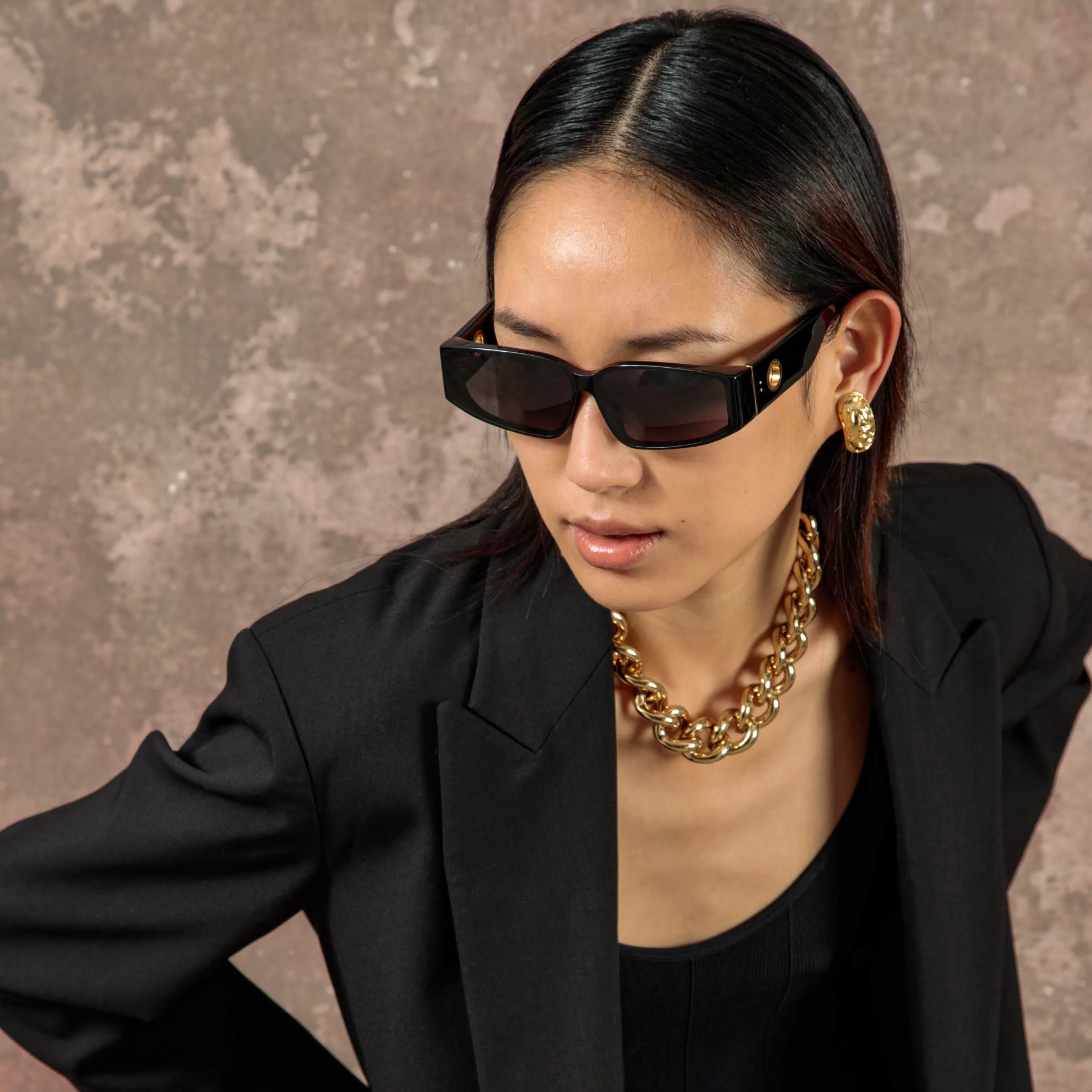 The Alexis sunglasses from the LINDA FARROW collection cast a modern silhouette.