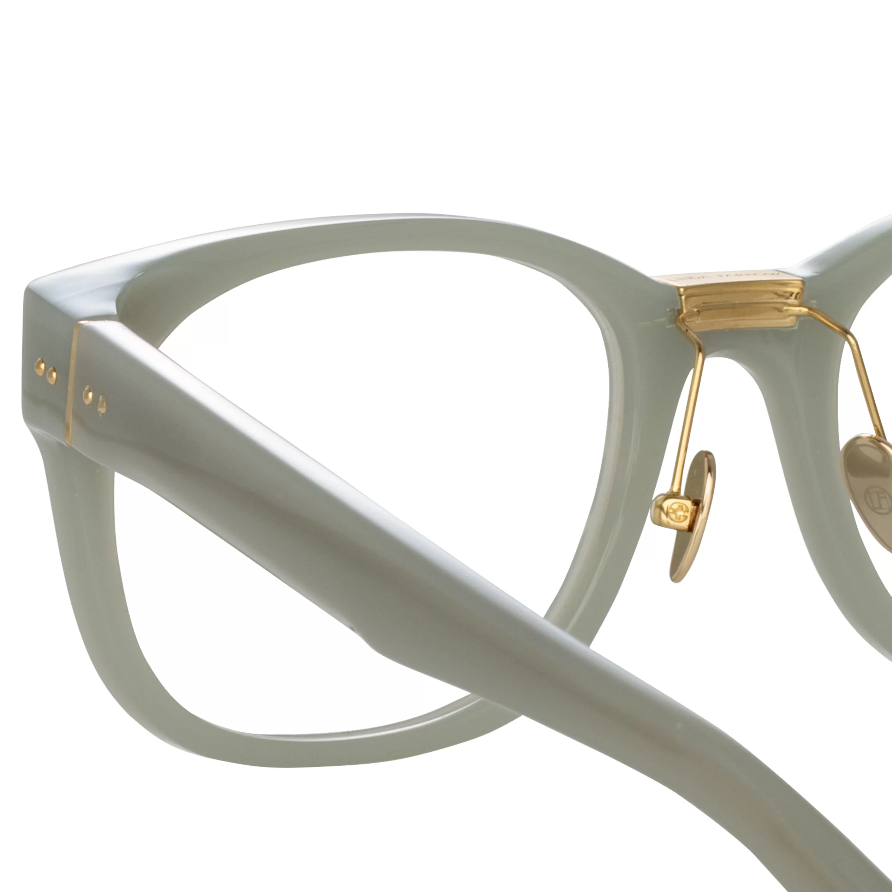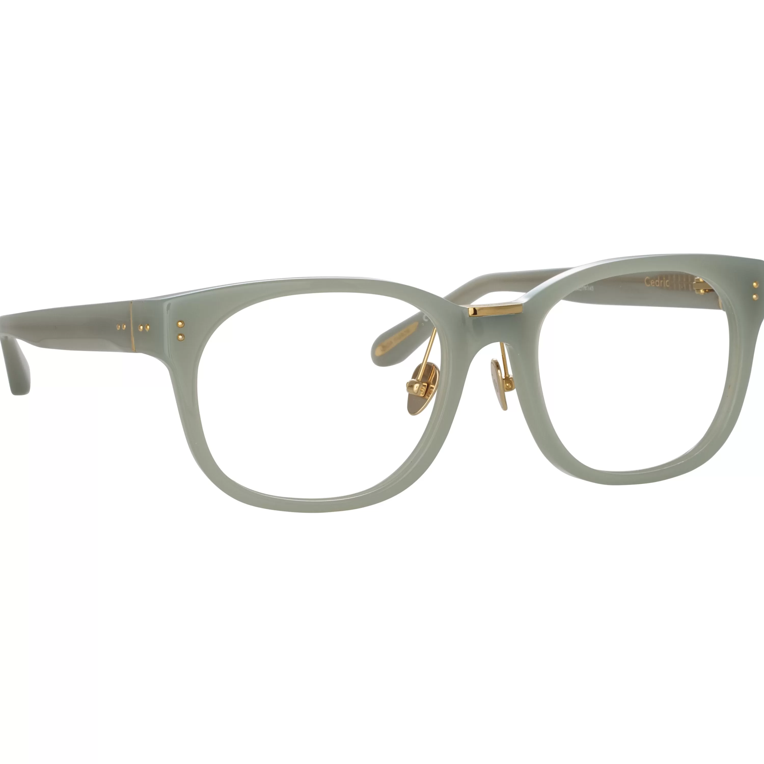 Rooted in a signature design language of the brand the Cedric optical frames combine glossy acetate and sleek titanium for an elevated style. Crafted from steel acetate the beveled acetate temples transition into sculpted tips finished with inset light goldhighlights.