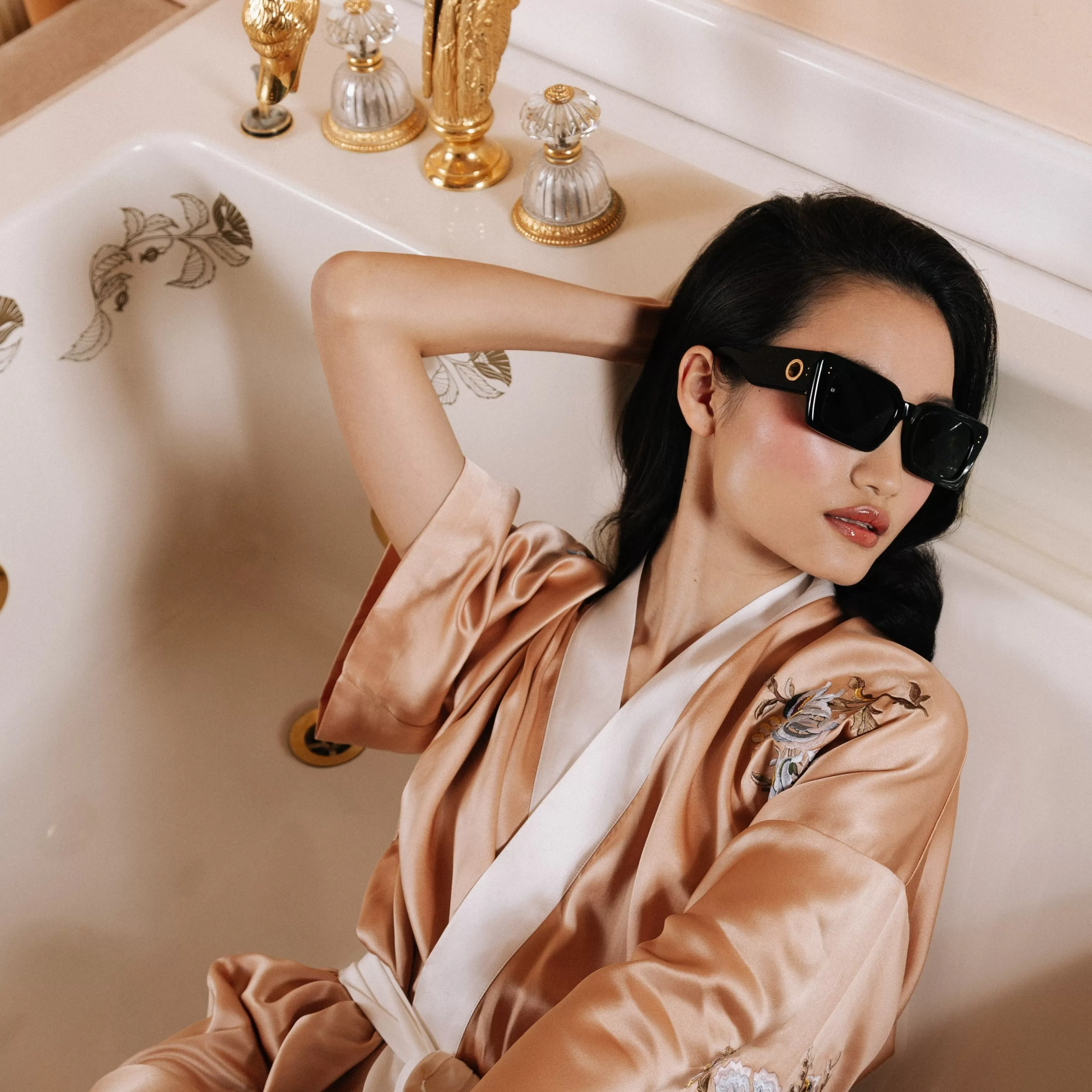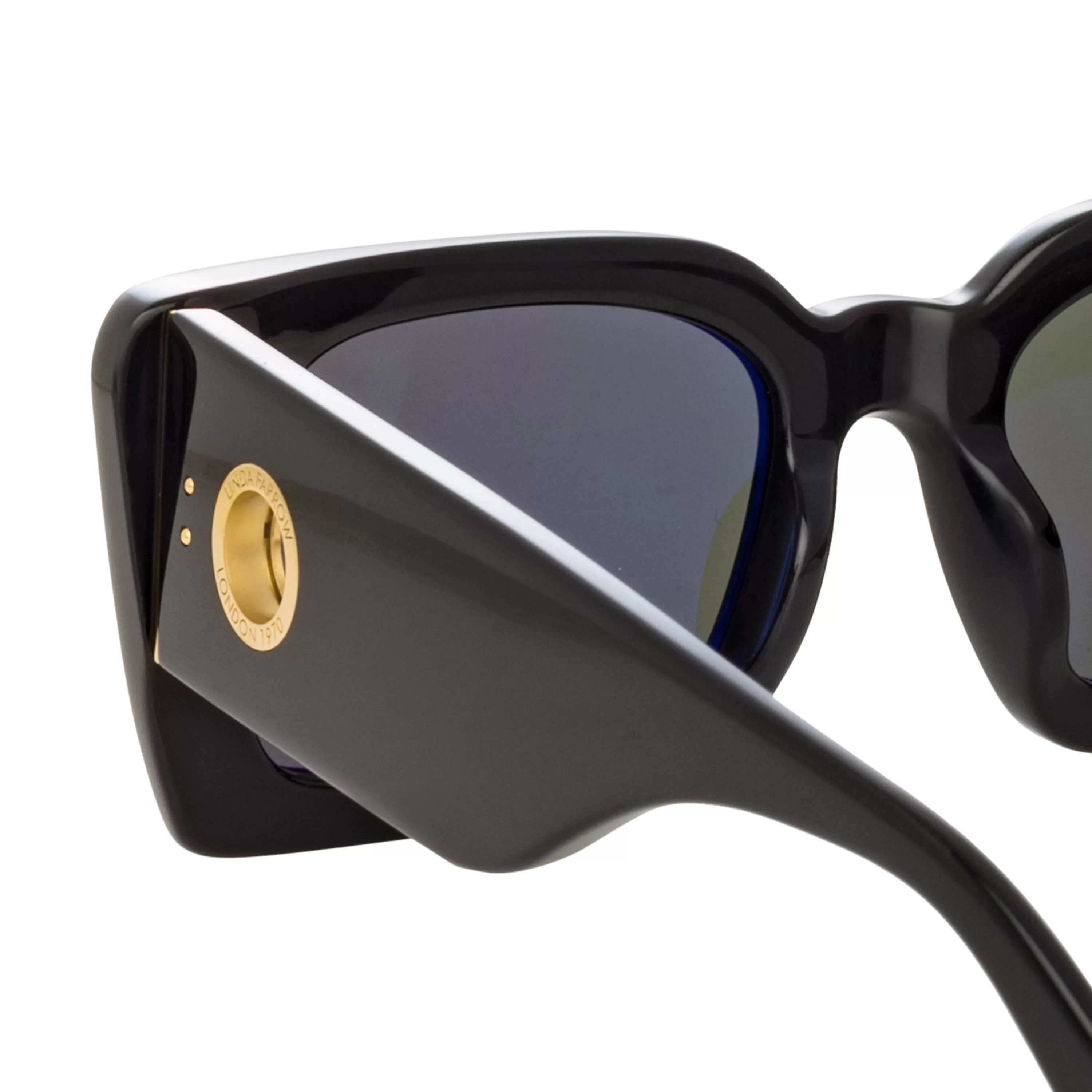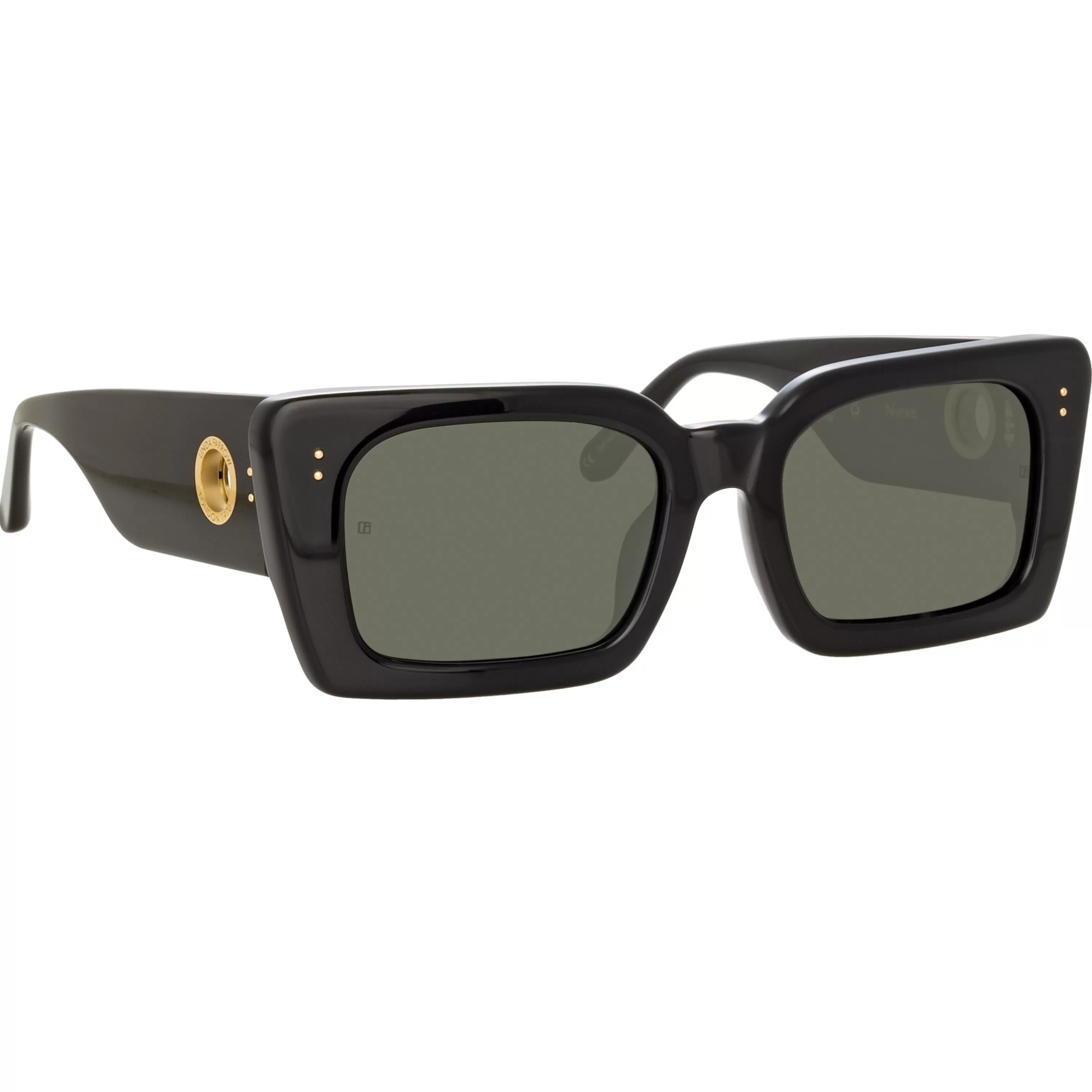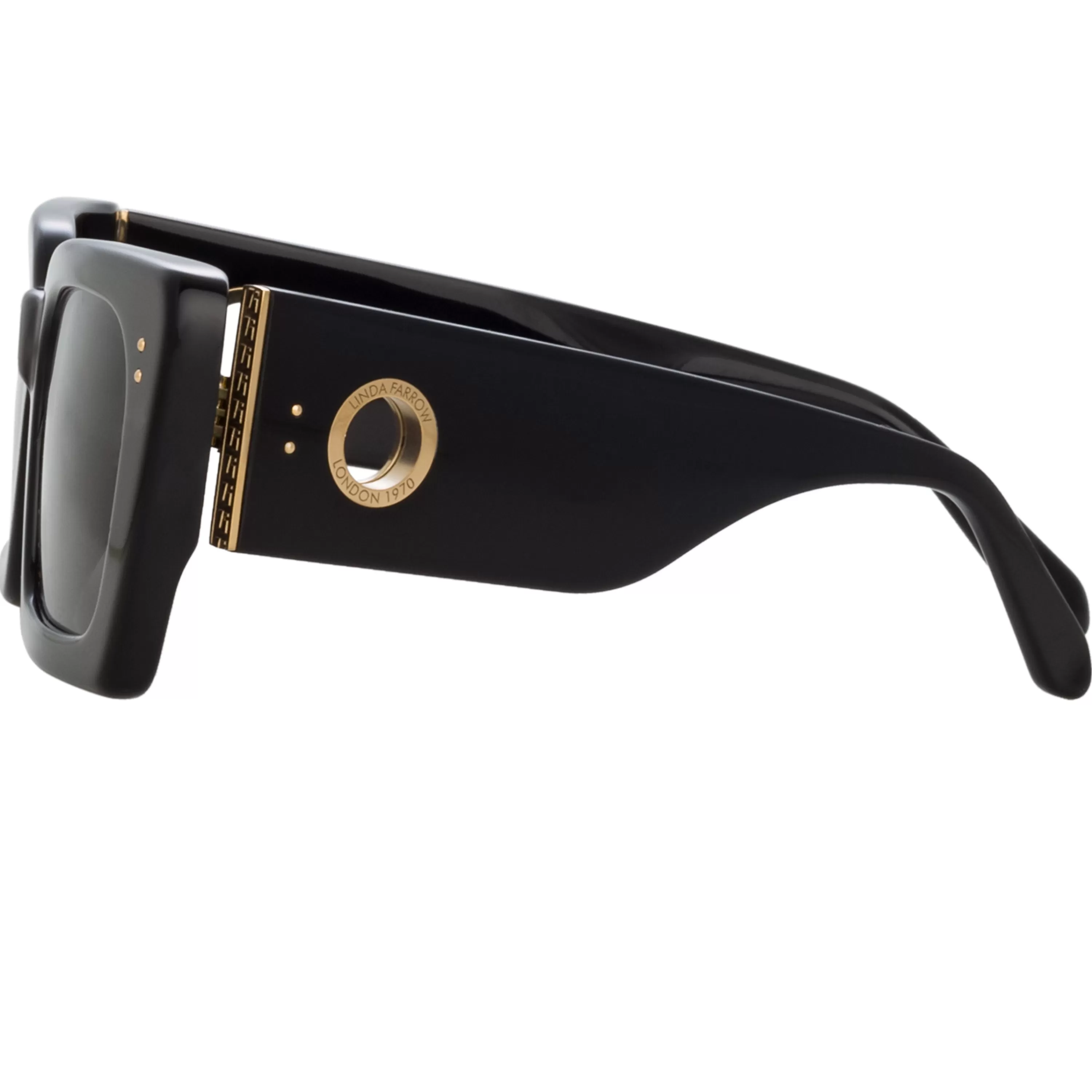 These glossy framed sunglasses from the LINDA FARROW collection are effortlessly chic. Sculpted from recycled black acetate the highly polished rectangular frames have a slight angle giving them an intriguing edge. Fitted with solid grey ZEISS technology lenses which offer 100% UV protection and unrivalled clarity.