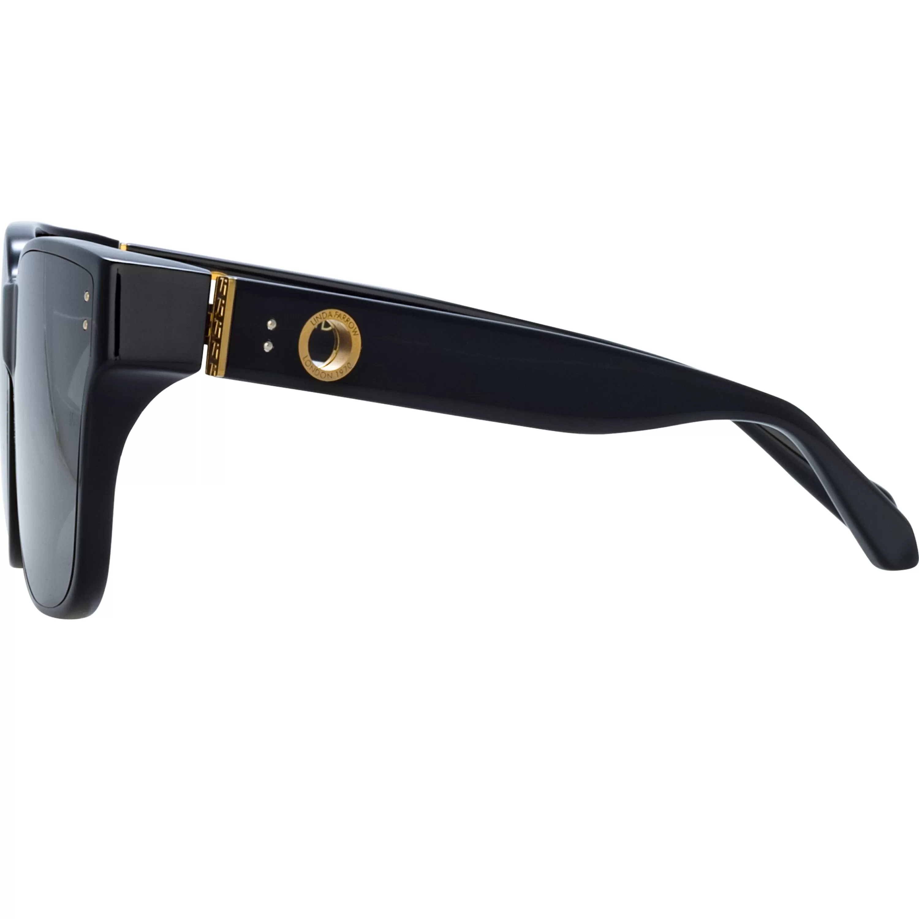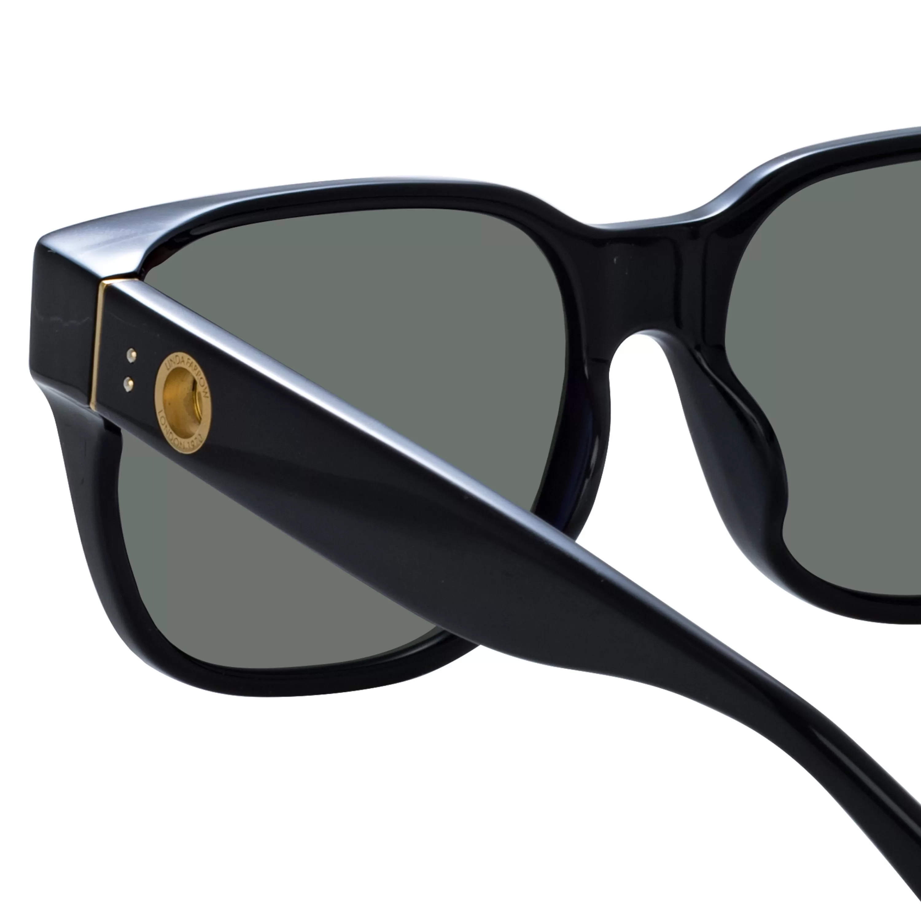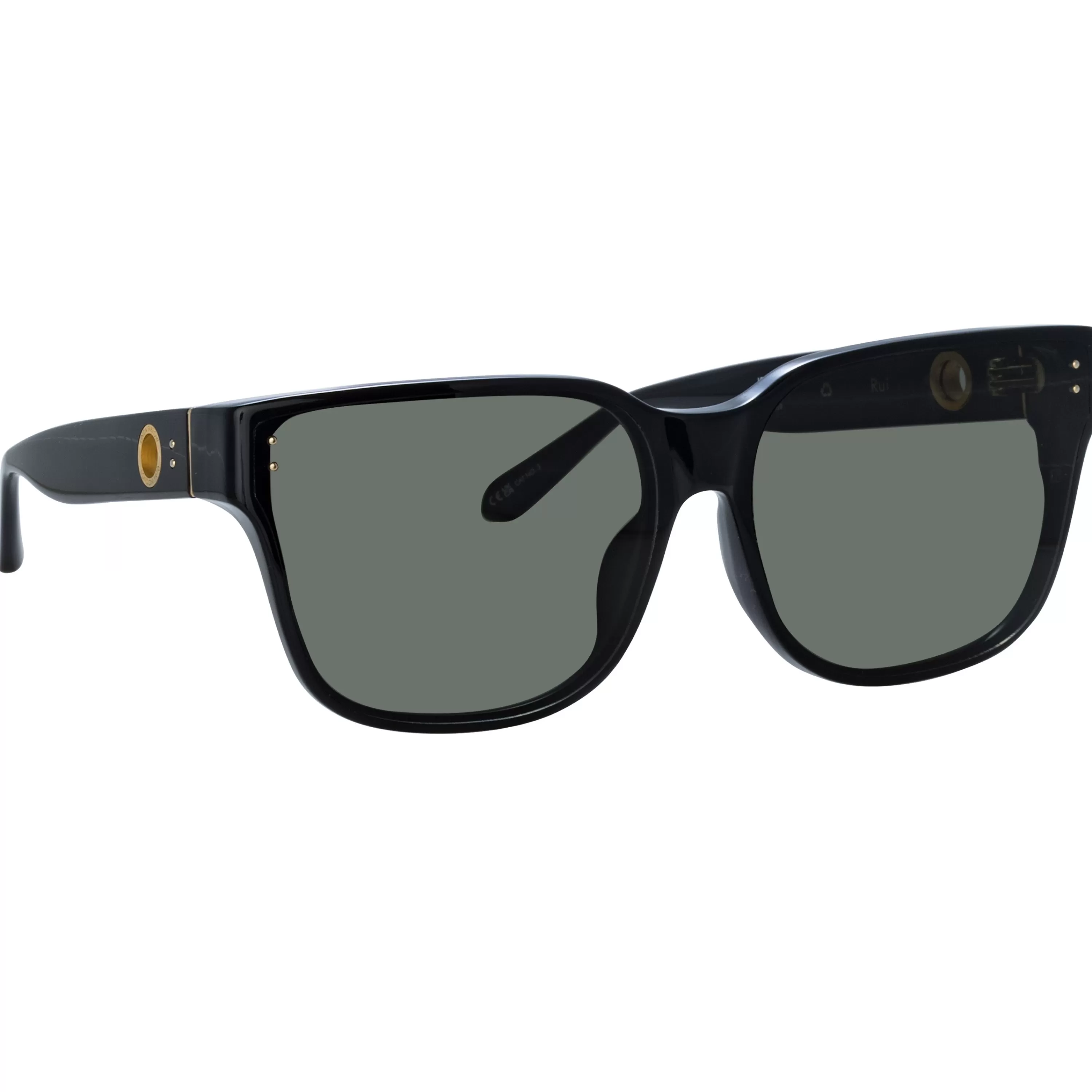 Introducing the Rui Oversize Sunglasses in Black. These sunglasses feature an oversized frame in recycled black acetate, fitted with grey lenses.