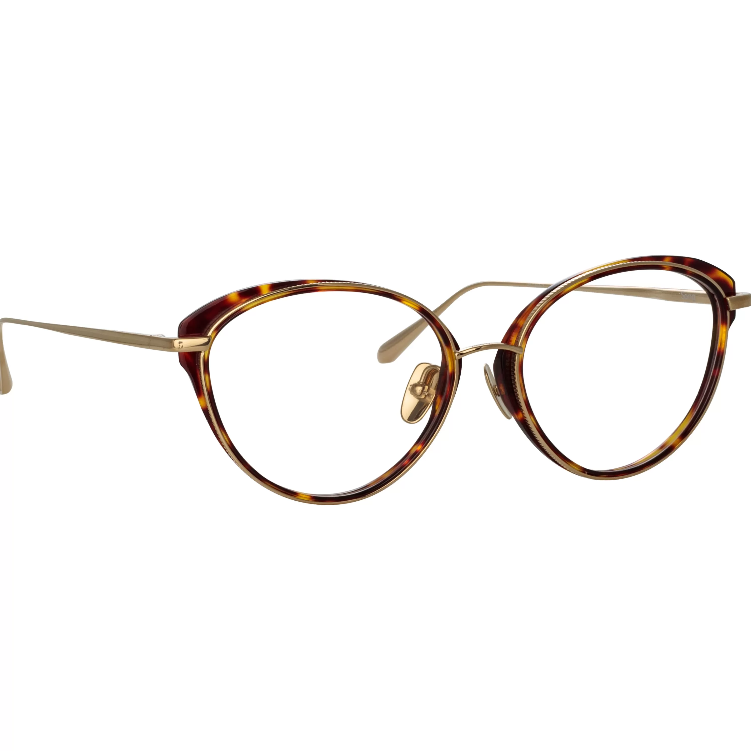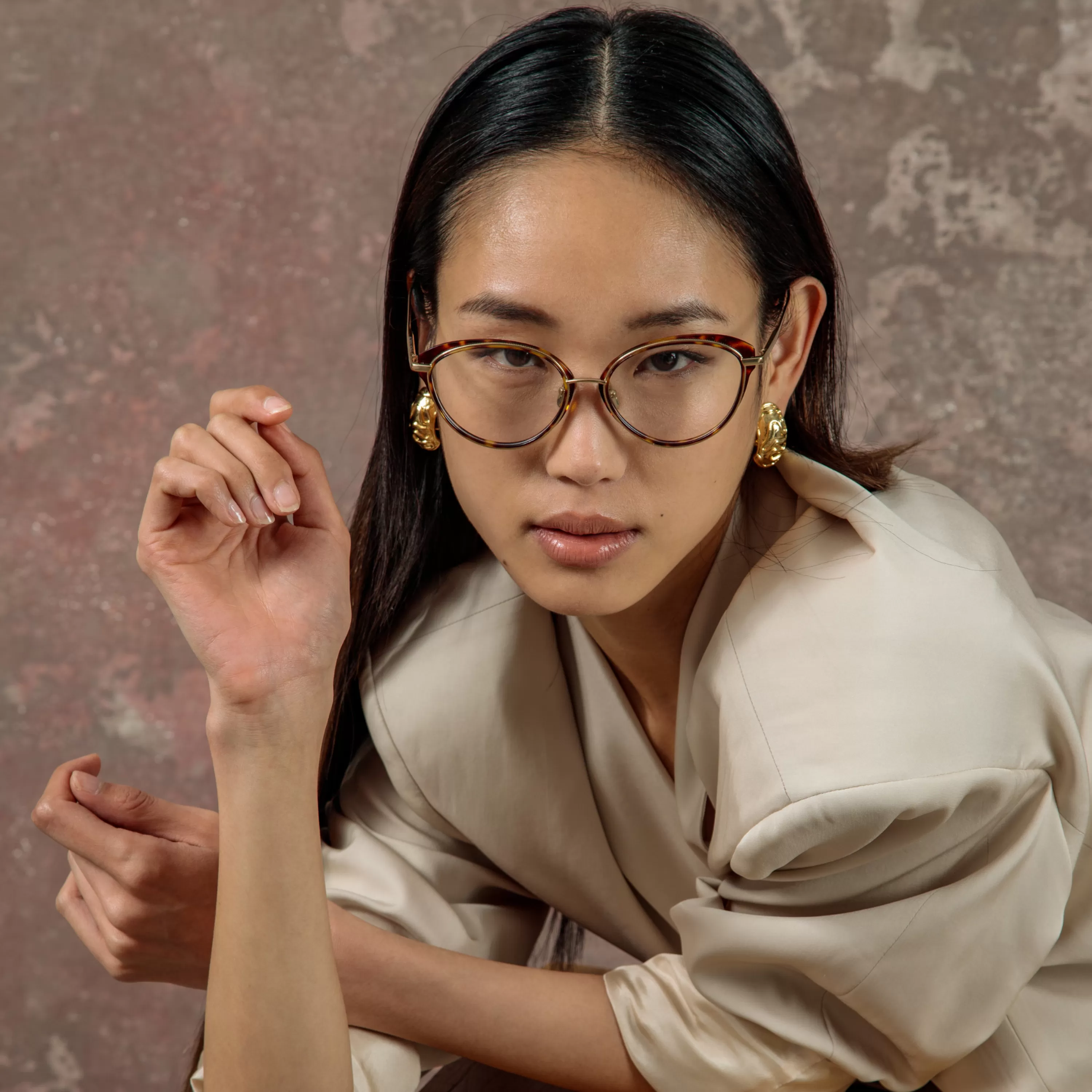 The Song pairs finely polished tortoiseshell acetate rims with a 22 carat yellow gold plated Japanese titanium framework.. They are completed with adjustable nose pads for superior comfort.