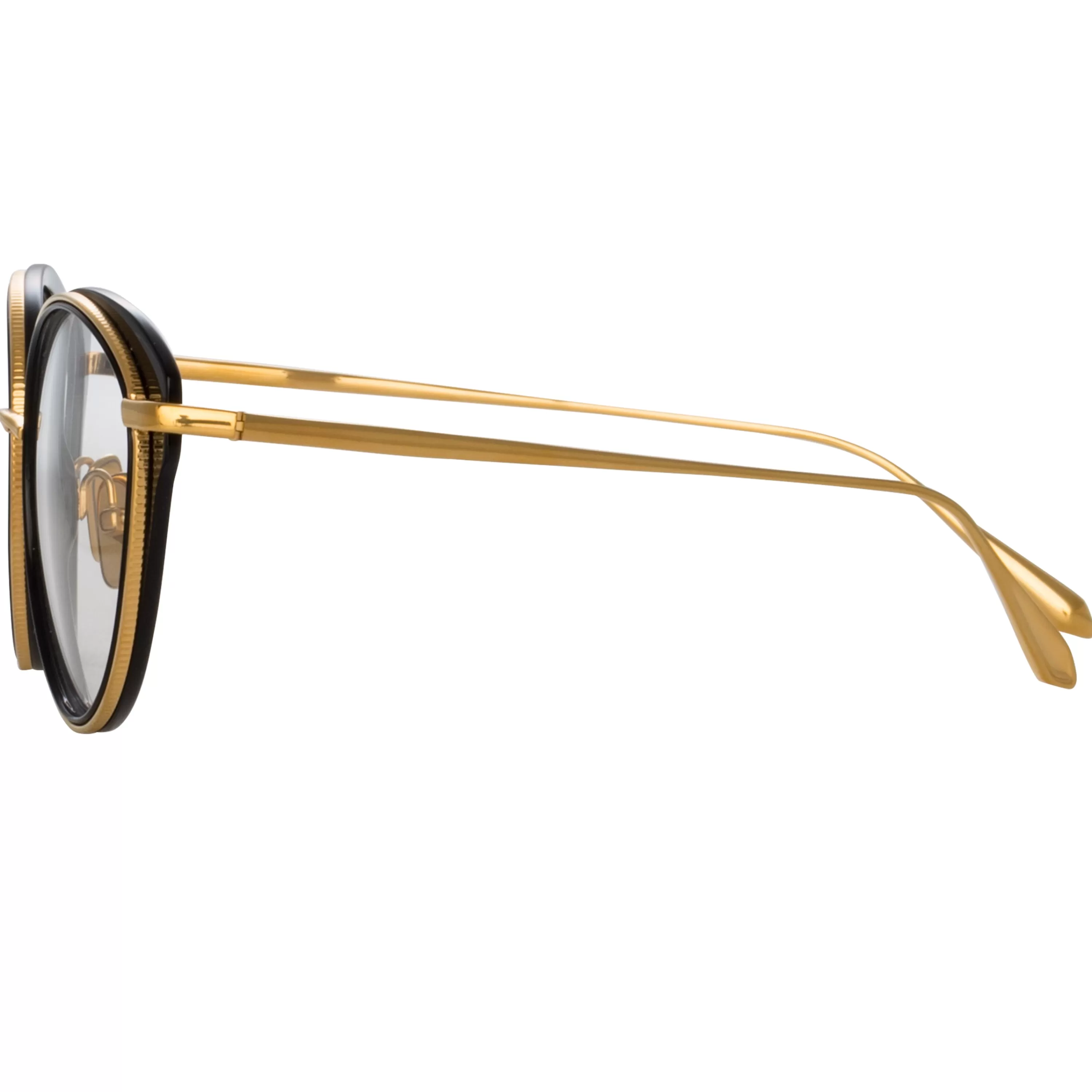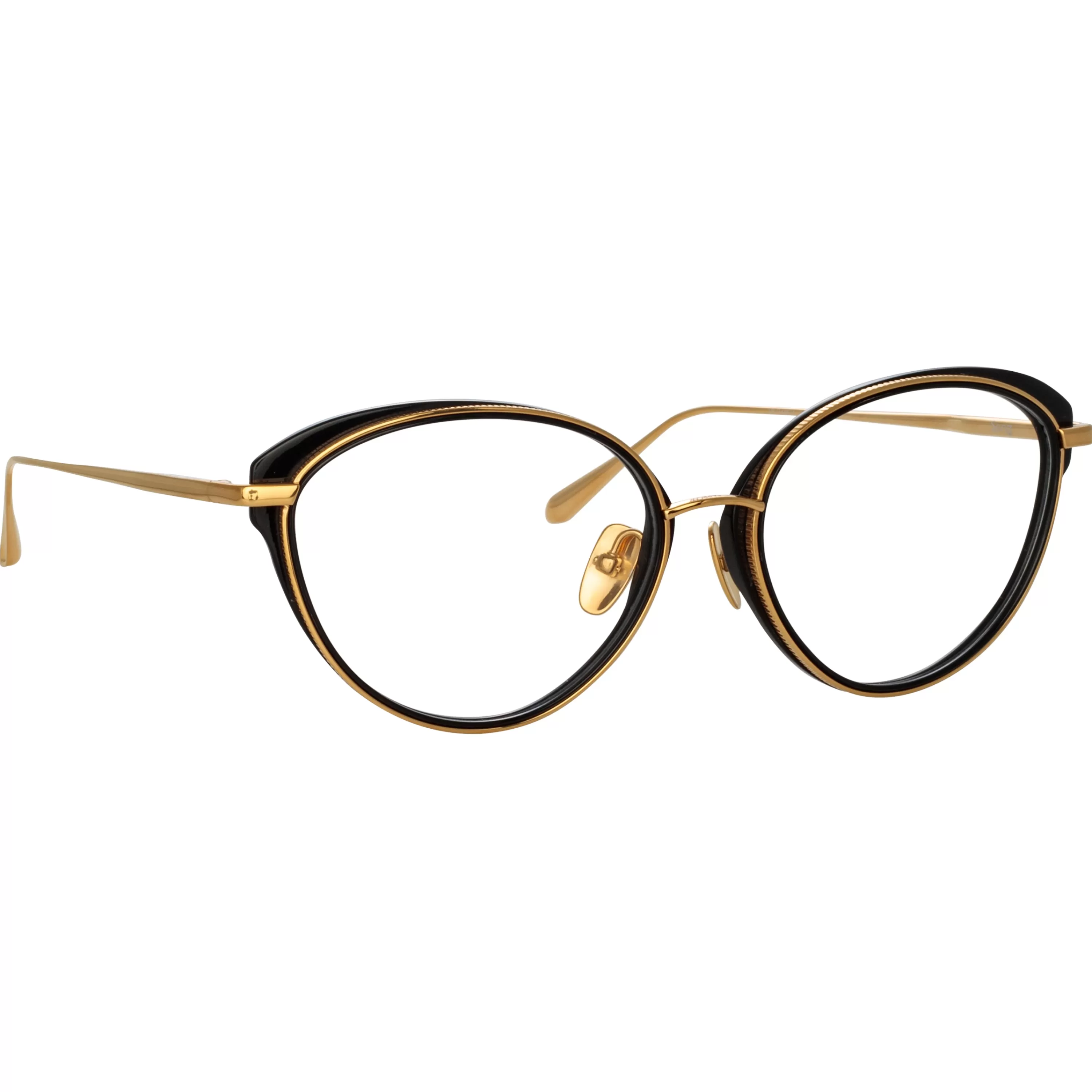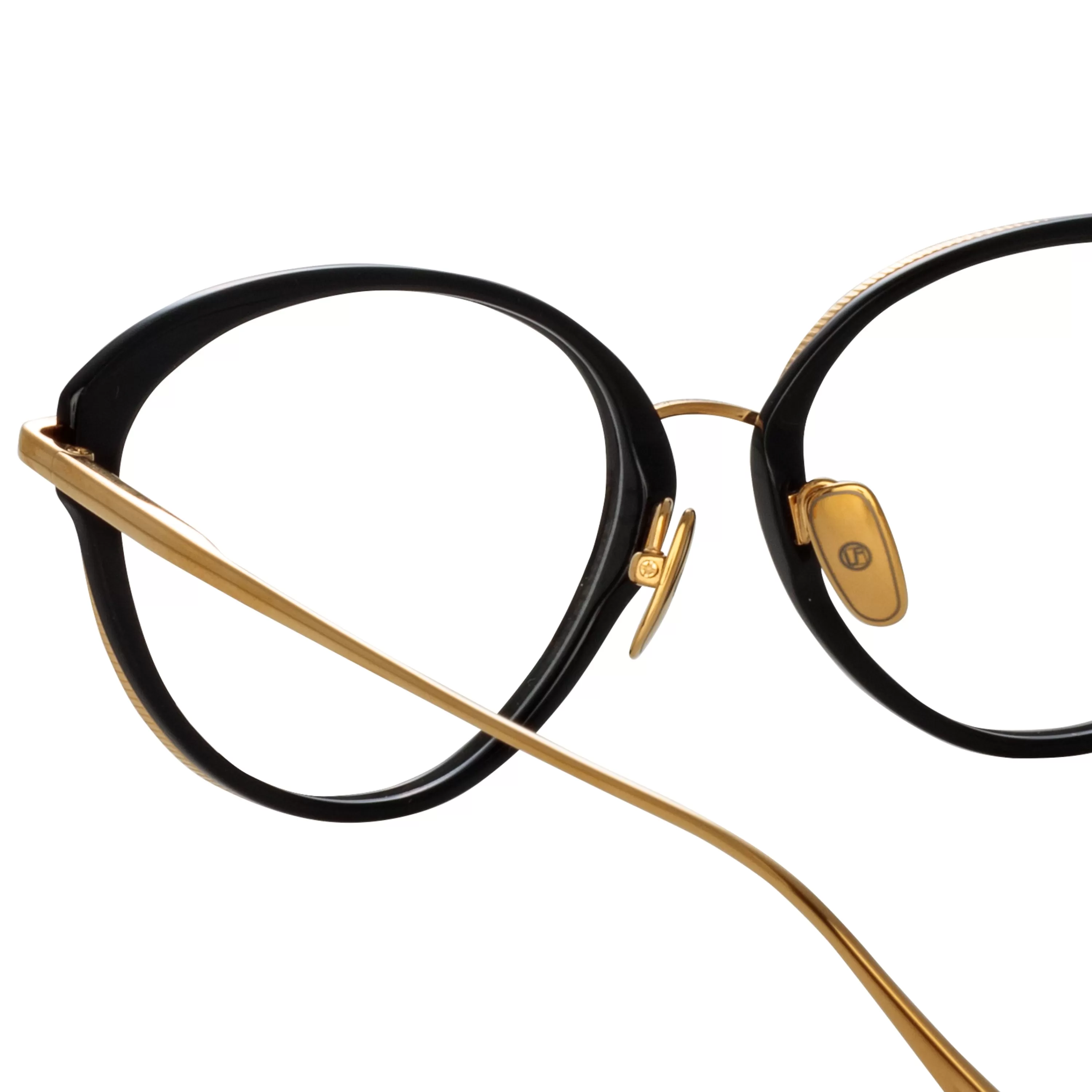 The Song pairs finely polished black acetate rims with a 22 carat yellow gold plated Japanese titanium framework.. They are completed with adjustable nose pads for superior comfort.